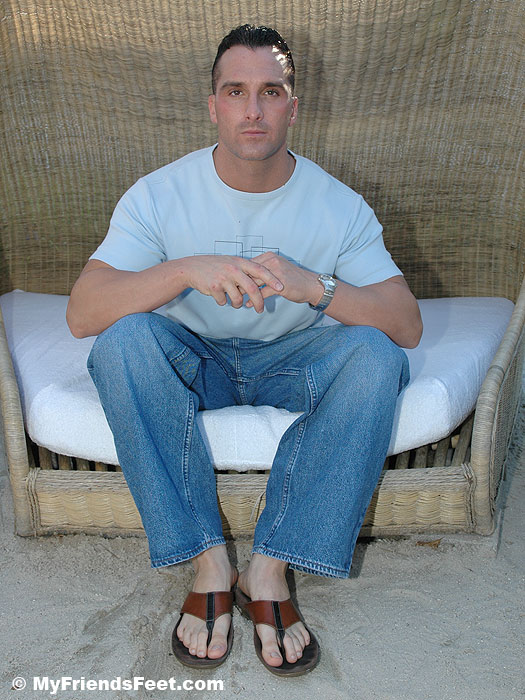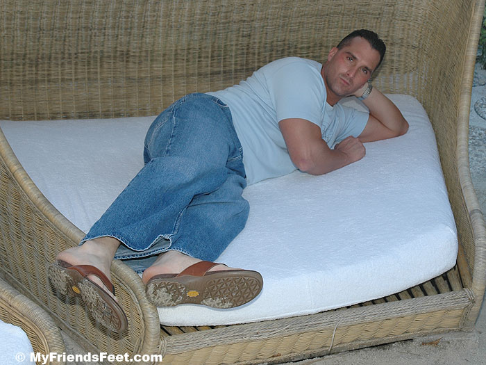 Sebastian is an actor trying to catch his big break. He is a blast to be around, very funny and quick witted. He was wearing sandals when I met him and my friend said, “You should ask Sebastian to model his feet for you while you’re here.” That was our introduction! Sebastian said “Sure” and we moved on to the next topic. It was that easy! A few days later we hung out for a while and I took these photos of Seb lounging around after getting some sun. It was such a beautiful day and Sebastian’s feet looked awesome in his flip flops. He has size 10 1/2 feet!