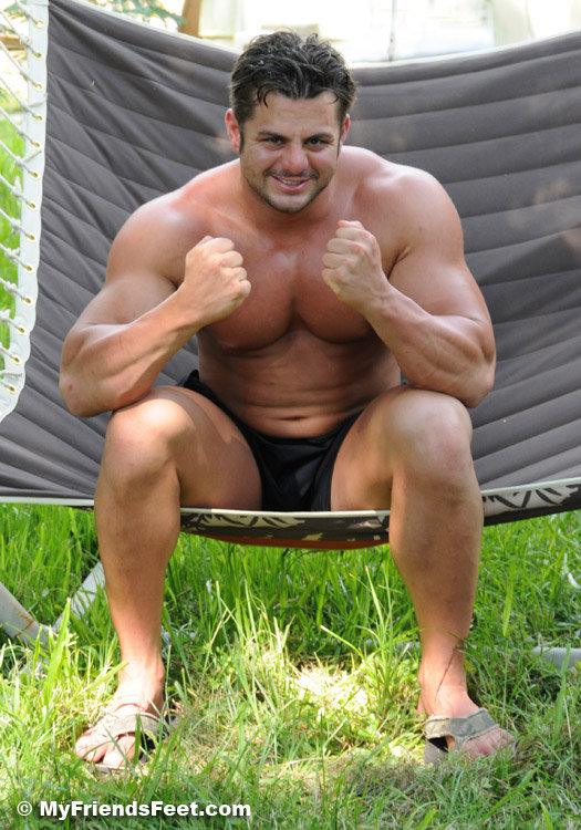 Frank DeFeo is one smoking hot Italian stud who loves showing off his incredible body and size 13 feet. He’s huge. We couldn’t resist snapping some pics of this stunning stud. Frank has become a good buddy of ours and hangs around the office quite a bit. Which is fine to us of course, because he just makes the days much, much better!