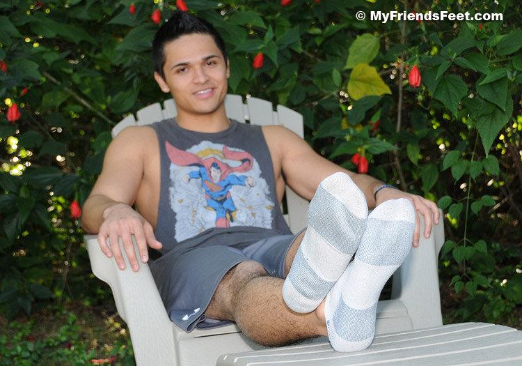 I love it whenever I make friends with Latino hunks. Especially when we walk around and I get to see how people react to them. People react very positively to Juan because he’s so cute and has beautiful size 11 feet. That would include the members of my site, of course. They love Juan’s feet and keep asking for more pictures of him in his white socks and bare feet!
