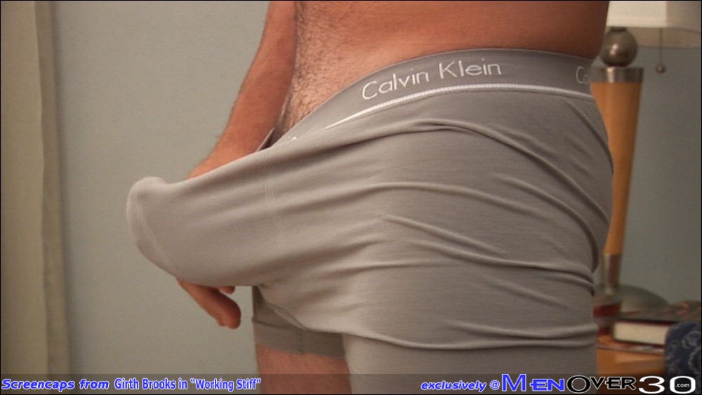 “The Man, the Myth and of course the ‘Girth’ of it all has come a’callin to MenOver30 now that one of ExtraBigDick‘s finest, Girth Brooks turns the Big 3-0! Having just turned 30 this past summer it’s nice to have more ways to enjoy him. Girth is from Massachusetts originally but lives in Florida now. With the recent political climate and the recent elections we discovered that Girth loves all the debates and has been following things since the GOP elections and likes being very involved in the process. Girth is hung and considers himself to be str8 even though he’s open to things that make that big dick of his feel great. He’s become more comfortable in his skin and as he starts to charter his thirties that will come in handy. Girth is currently single and enjoying the freedom that being a man-whore affords him. Girth likes tiny, fit girls that are short with a nice ass. He’s also attracted to women that are nurturing and affectionate since he wants to have a family someday. Well, that may be down the road a ways; but today we’re all about ‘Man-whore’ Girth who has done everything he’s ever wanted to do sexually… Girth’s at work trying to get stuff done but unable to concentrate with his dick standing at attention in his slacks. He gives in and decides to take care of business in the break room. He locks the door and strips off his suit and shirt as he fondles his fat cock through his pants. He unzips them and after squeezing that fat cock through his briefs he takes it out, giving it the breathing room it needed. Girth’s cock is extra fat and rock hard in his hand as he starts to stroke it. He sits back on the couch and keeps playing with his huge boner as he moans with delight. He strokes his cock dry for a bit before spitting on his knob a bit. He uses a porn rag for inspiration as all the images of tits and snatch get that dick hard. He lubes up and gets to work on his meat making it much easier to pleasure himself. His cock is throbbing by the time he stands up to give us a better view. He bends over to show off that hot ass we’ll never get a crack at. (…pun intended) He spreads his smooth ass cheeks apart as he pushes his hard cock back so we can see everything on the menu. Girth’s hairy chest is trimmed short and his body is looking better than ever. He stands up and gets back to work stroking that cock as the camera slides beneath him to give us a better view of those swollen nuts and fat cock getting ready to unload. Girth picks up the pace feeling that familiar tingle in his balls. He grunts as his cock explodes sending his thick load splattering everywhere and just inches above our lens. He squeezes out every last drop finally giving his cock the relief it begged for. Whew!”