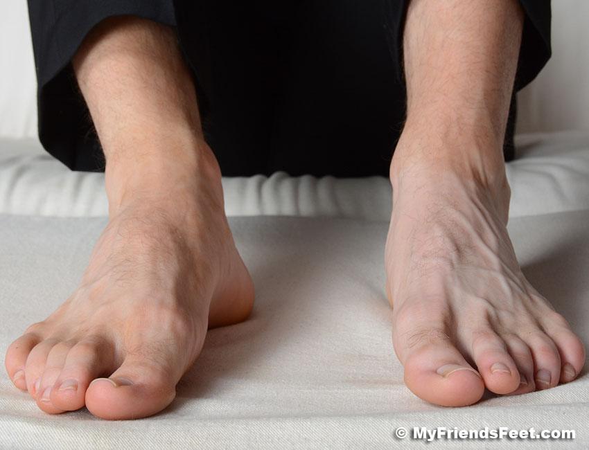 “Bodybuilding hunk Clay visited me recently, asking if I’d be interested in taking more photographs of him showing off his size 13 feet. With how good looking Clay is I certainly wasn’t about to turn his offer down. What a body he has too. Clay appears to get bigger and more muscular every time I see him. He showed up in some nice clothes, including a pair of black dress socks that looked fantastic on his big feet. Then again, his size 13’s look even better bare. Long toes and heels that some day need to be tickled and worshiped. I won’t stop trying to seduce Clay any time soon!”