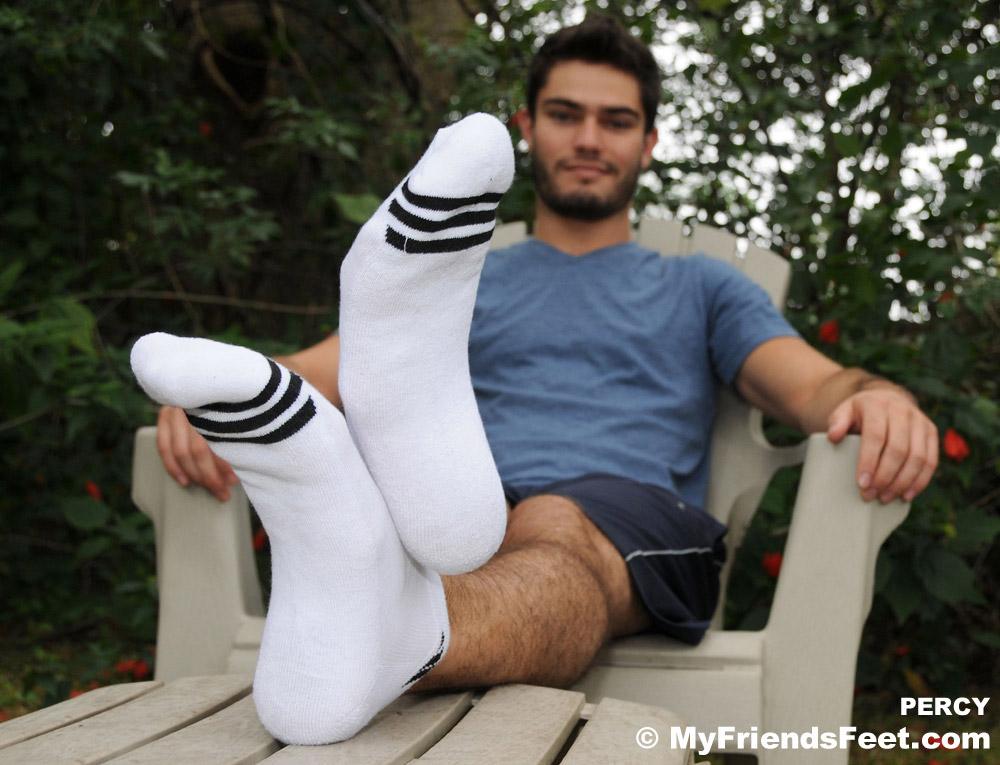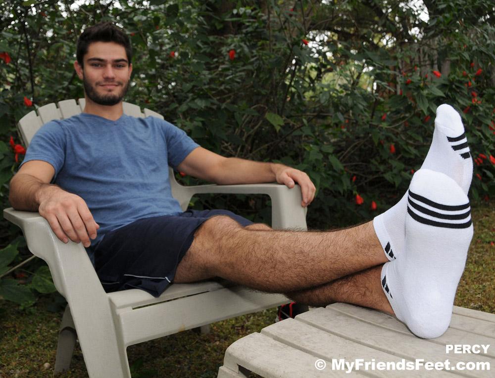 Percy is about as cute as they come in the hunk department. He’s really easygoing and sports a beautiful pair of size 10 feet. How luck we are to get him to show them off at MyFriendsFeet. Percy prefers flip flops, as he can flip them off and leave his feet bare at a moment’s notice. Which is definitely ok with us. Percy stripped down to just his jeans, presenting a very sex picture indeed!