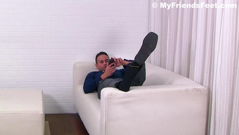 “Ravi is a hard working banker and lately he’s been on his size 10 feet a lot. He and Vlad are roommates. After testing out my invisibility cloak to spy on Vlad I decided to use it to spy on Ravi too after he got home from work one day. It was so hot seeing Ravi rubbing his feet and socks in person. He first slips off his dress shoes while texting on his cell phone, his black and gold dress socks right there in my face. SO hot! I was so nervous that he would hear me even though I knew he couldn’t see me. Eventually he slips them off to reveal his gorgeous feet, rubbing them and teasing me at the same time – yet he didn’t even know it! I tiptoed out of there after he went to get something to eat. It was a thrill seeing his feet up close like that.”