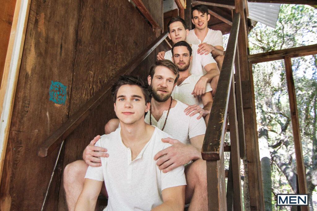 “Will Braun feels at peace in his new remote home among likeminded, free spirited people. Cult leader Colby Keller summons his followers so that they affirm their bond to one another through passionate cock sucking and hard ass fucking. Brandon Moore, Addison Graham, Roman Todd, and Will Braun demonstrate true loyalty to their leader and each other in this campground fuck fest.”
