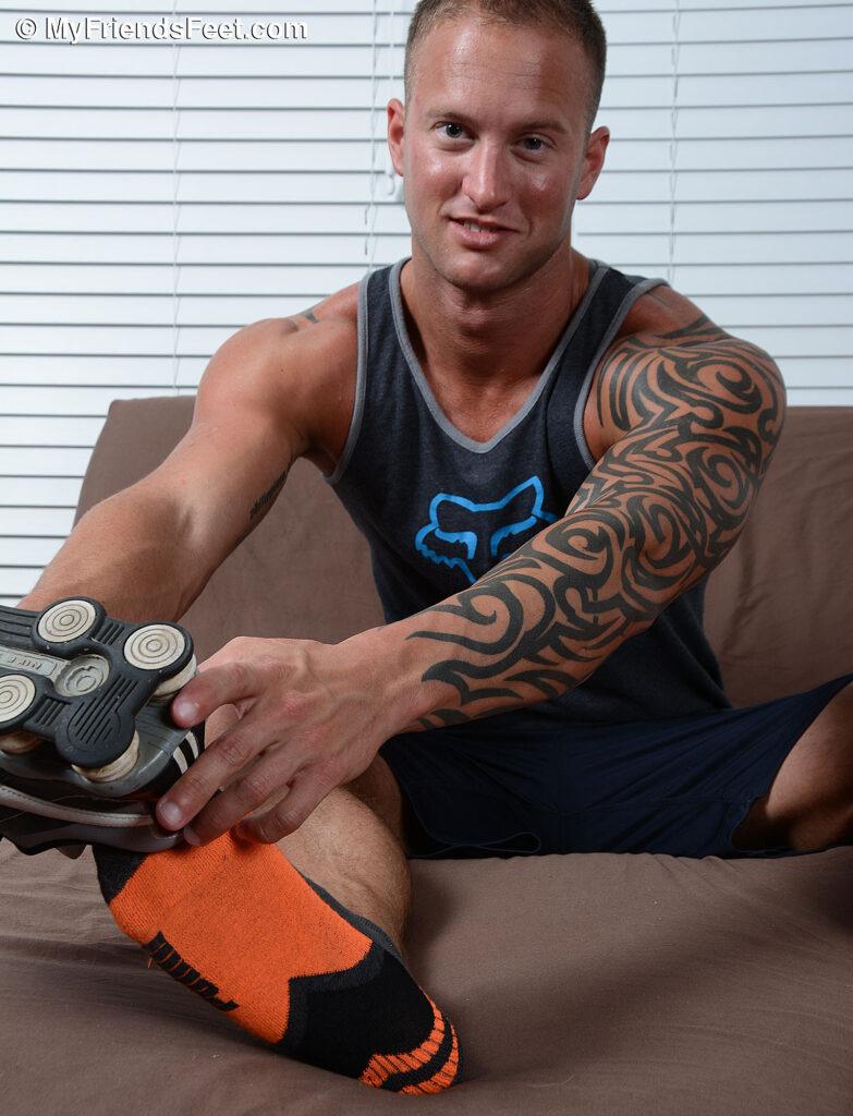 “It’s been a while since I’ve seen Jason James and it is always a pleasure to hang out with him. Jason always has a smile on his handsome face and it lights up even more whenever he’s showing off his gorgeous, masculine feet. He showed up for this photo shoot in a really sexy pair of black and orange socks – which he proudly showed off. He loved it when I got up close with my camera and got some great POV shots. I was sure not to miss out on his bare feet too though. He has such a hot body and his feet are so masculine.”