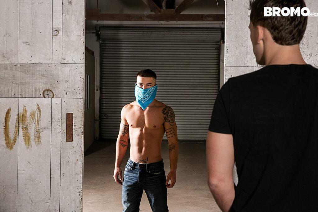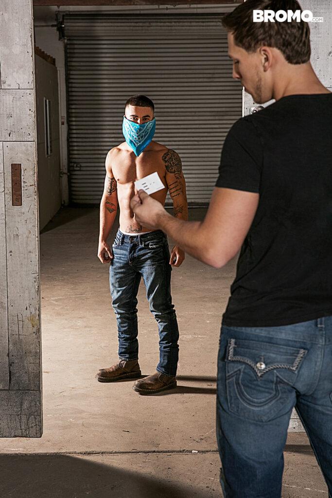 “Roman Todd finds a cryptic card in his jeans and decides to call the number. When he shows up to the address, he finds the young Adonis (Vadim Black) he’d almost hooked up with earlier. Still donning a bandana over his face, Vadim drops his pants and in no time Roman is on his knees deep-throating his big dick. What follows is an epic raw flip-flop session that these guys sure won’t forget anytime soon.”