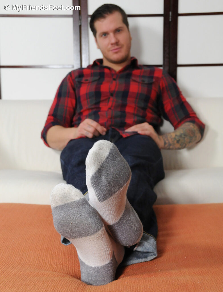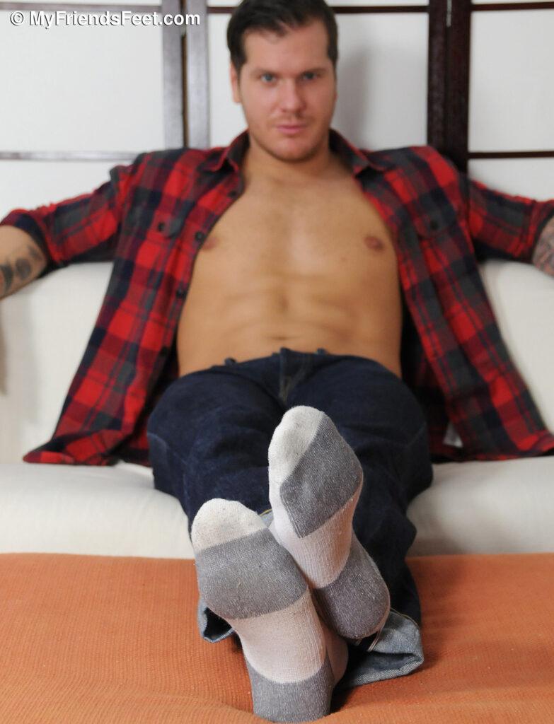 “It’s been a while since I last saw 6’3″ tall Parker London and I swear the man gets better looking every time I see him. Parker has a very sexy smile and his body is to die for. It is his huge, size 13 feet that I love the most about him though. Well, beside his great personality that is. Parker is full of attitude and it comes out in his foot photo shoots even, but there is so much sexual appeal emanating from this man that it only makes him hotter. Especially when he teases me by slowly taking off his athletic socks before revealing some of the nicest, size 13 feet I have ever seen!”