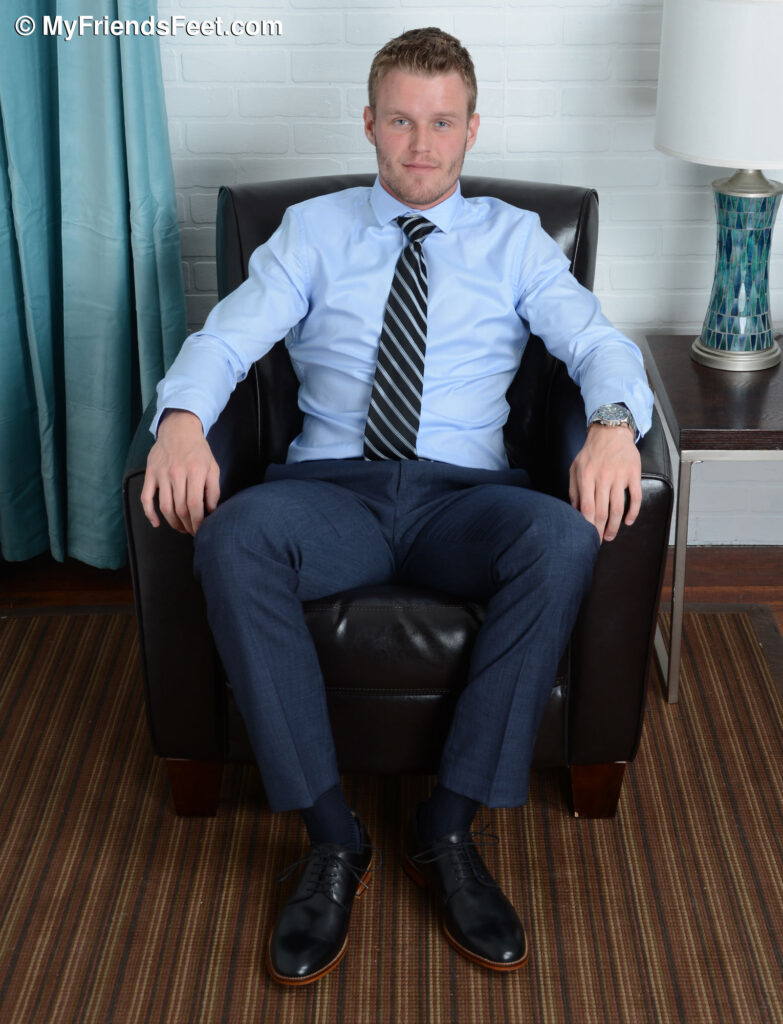 “Check out my new, super sexy foot model Shawn Reeve! Talk about a hunk. 6’3″ tall Shawn showed up for his debut shoot in a nice shirt, dress slacks and blue dress socks that drove me wild with lust as soon as I saw them. Shawn sure knew how to tease me right from the start, very slowly taking off his dress socks to reveal his fantastic size 13 feet. I had a fly-busting hard-on the entire time I snapped photos of Shawn, doing my best to keep my composure as he presented his stellar, worship worthy feet!”