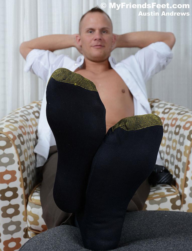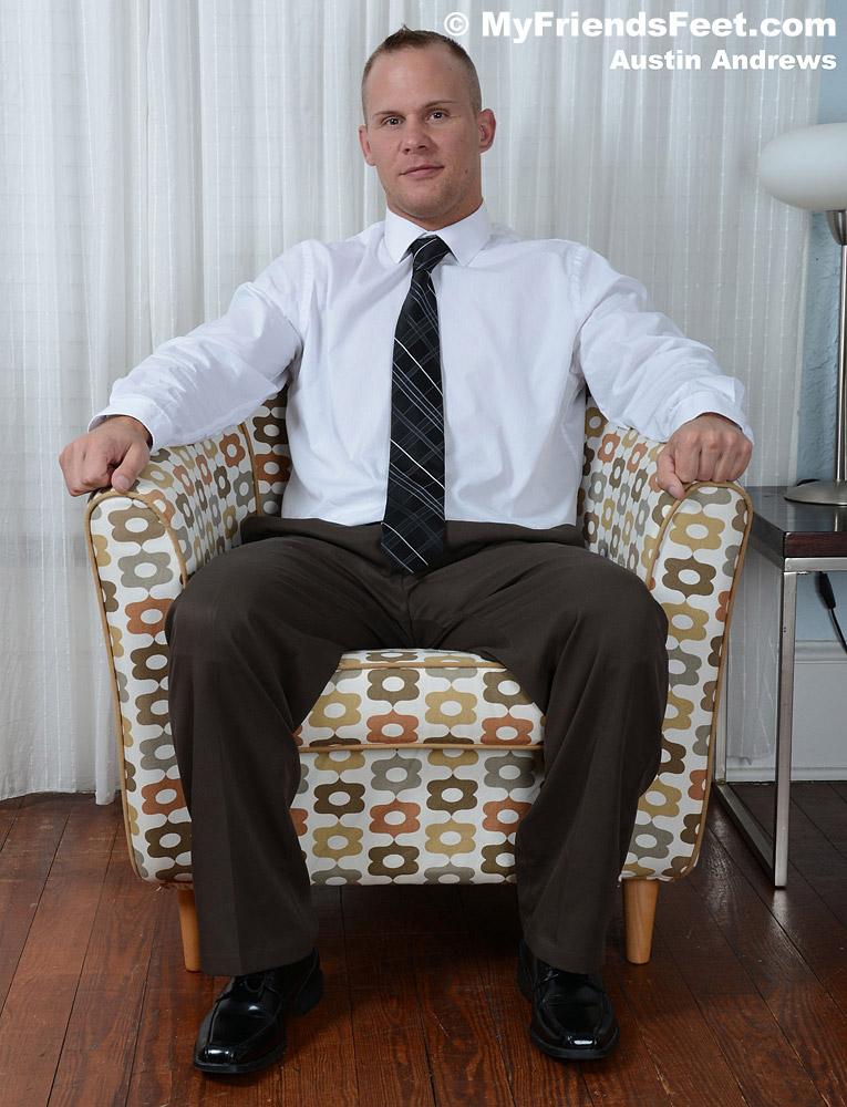 “Austin has a powerful presence about him and I think it partly has to do with him being ex-Army. He is a laid-back guy but also very confident at the same time. Austin is the kind of guy I’d like to have as a boss – and he looks hot in his dress socks. Once the socks are off his size 10 feet are nice and wide with sexy toes.”