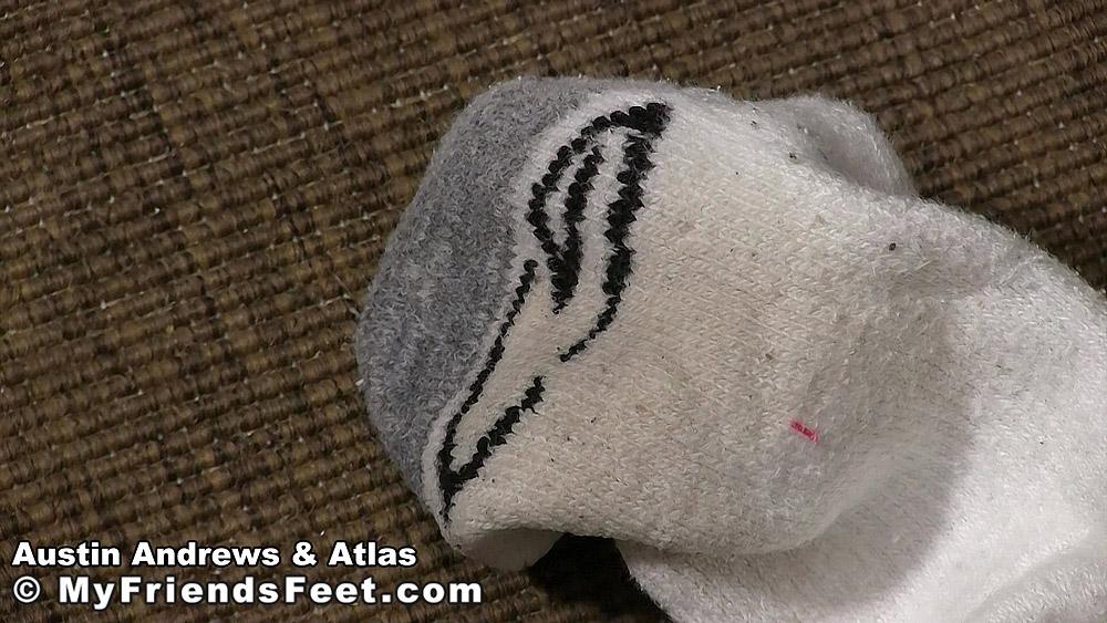 Austin captures huge bodybuilder Atlas, tying him up with the intention of worshiping his enormous size 14 feet. Atlas is gagged and dazed, so he can’t say much other than some moans and groans, which suits Austin just fine, of course. Austin can’t get enough of the odor of Atlas’ smelly, socked feet. He shoves his face right up against them, reveling in their aroma. After getting enough of the sock smells he eventually takes them off in order to work Atlas’ massive masculine feet with his mouth. He ends up putting one of Atlas’ dirty socks over top of his hard cock while he strokes it. Austin shoots a load in Atlas’ sock – and then he has to figure out a way to dump Atlas back at the gym.