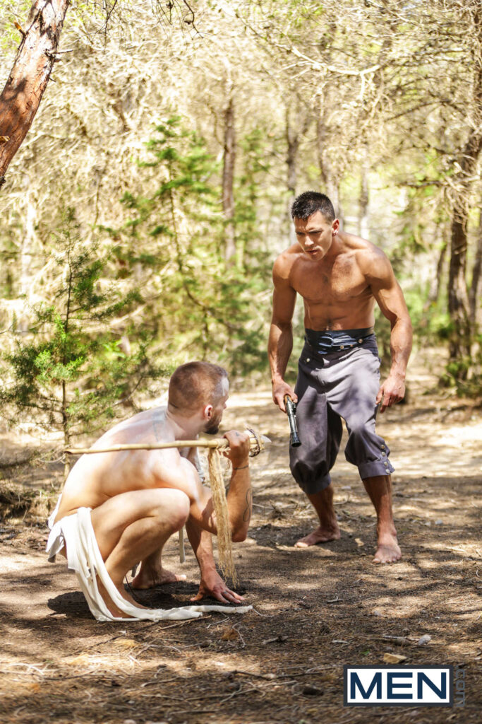 “Diego leads Johnny away from Paddy’s ship. Aggravated by their escape, Paddy mounts a search to retrieve Johnny. He swims to the shore of the nearest island where he encounters Colton Grey and his tribe. After a pursuit on the beach, Colton gets Paddy exactly where he wants him: pillaging his hot little hole the way only a seaman knows how.”