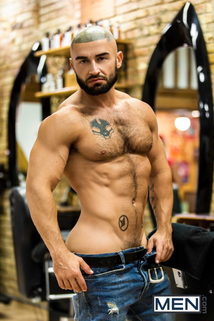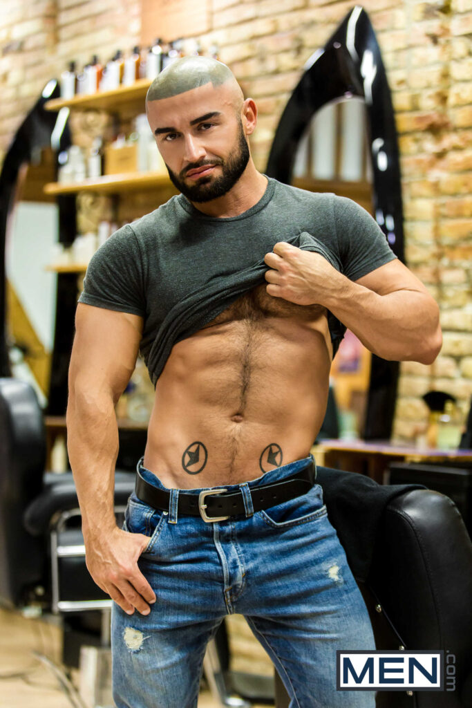 “Dato Foland is in for a haircut but gets way more than he expected courtesy of Francois Sagat. The men take turns sucking, licking and fucking each other to a perfect cumclusion.”
