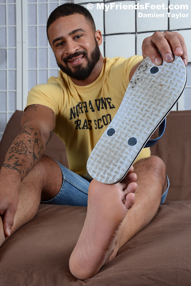 “Damian Taylor is an incredible guy. His size 9 1/2 feet and tight body are so sexy. Those manly toes are very ticklish too (as well as the rest of him). I know that Damian was happy I was only capturing him in photos and not in bondage to get tickled again, although I’d love that to happen soon.”