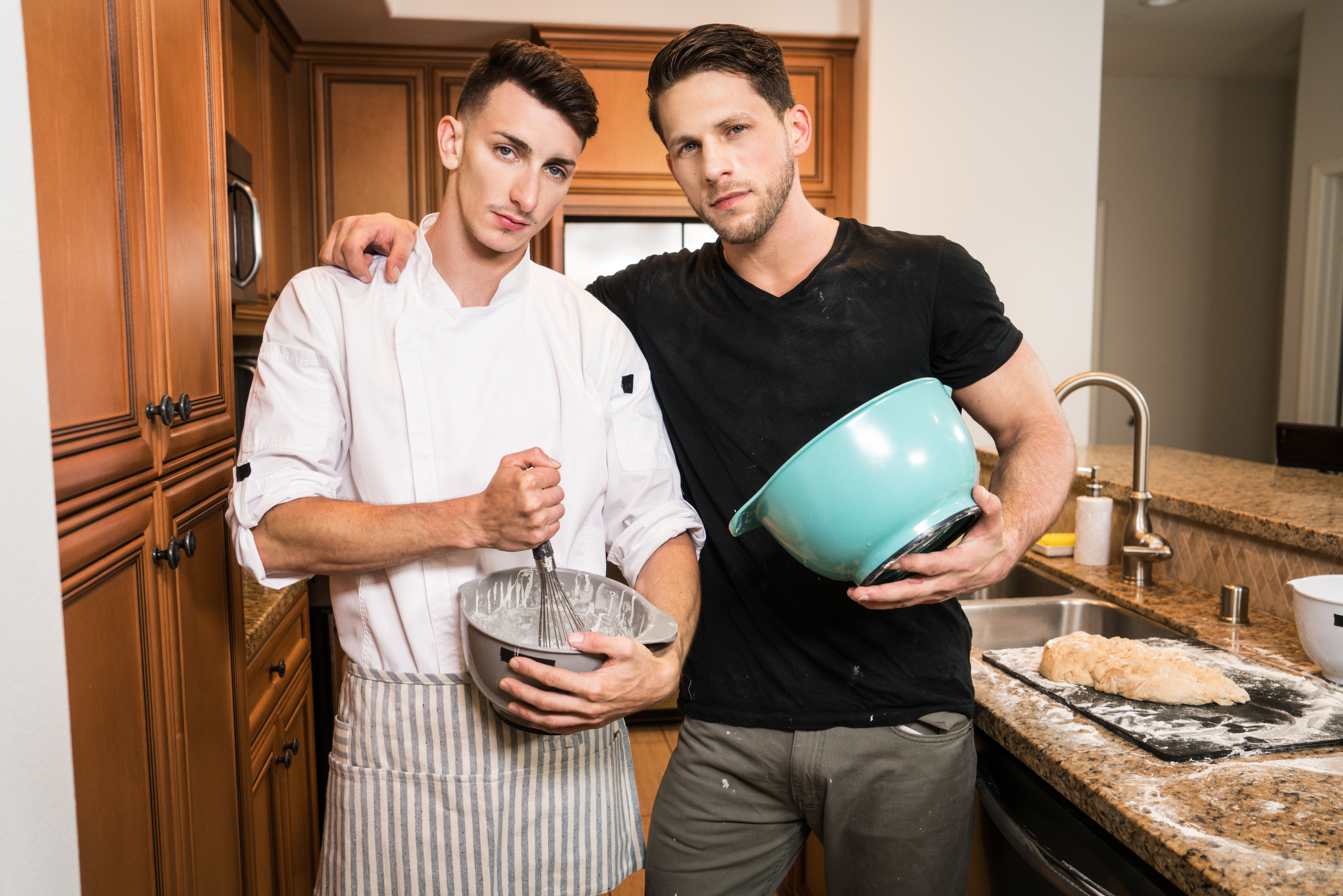 “Roman Todd has invited professional baker and close personal friend Michael Jackman into his home to teach him how not to be such a mess in the kitchen. However, Michael soon realizes that Roman has more than cooking on his mind as Roman makes a series of enthusiastic if misguided passes at the tall, athletic chef. Roman finally persuades Michael to help him blow his load so that they can really focus on the joy of cooking. Roman drops to his knees and swallows Michael’s long, hard cock in the kitchen before letting Michael put him up on the counter for an intense pounding. The sexy jock takes Michael’s cock bareback all over the kitchen until he shoots his load all over Roman’s hungry hole.”