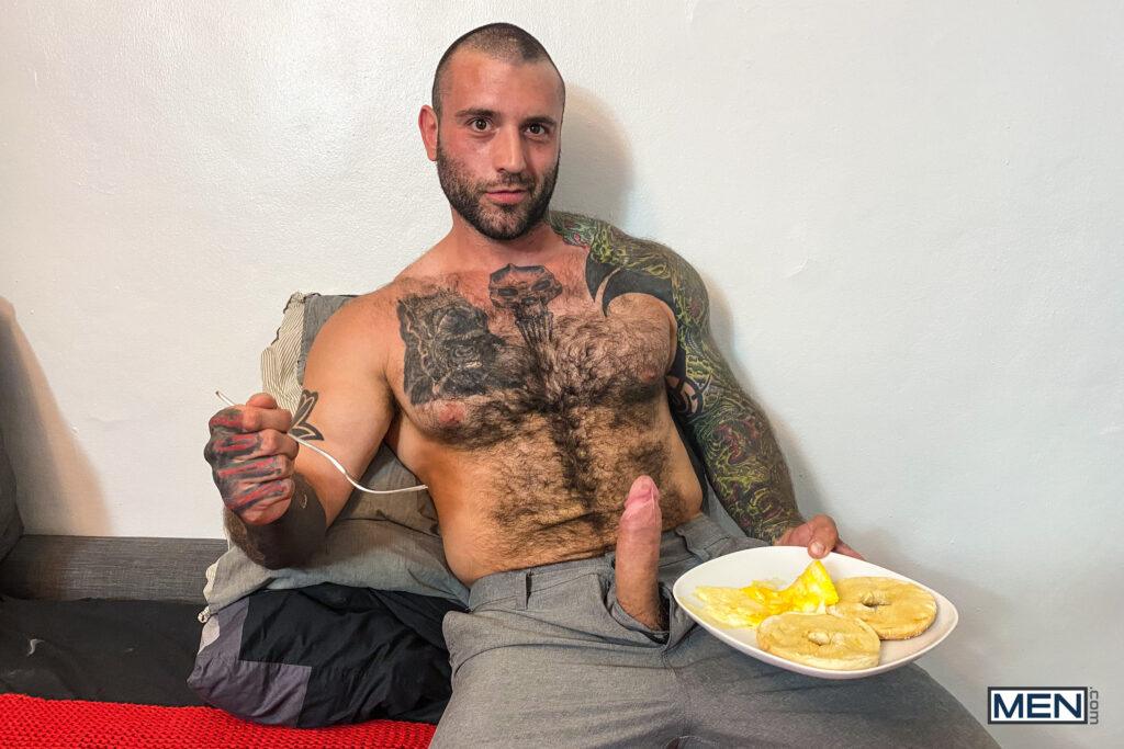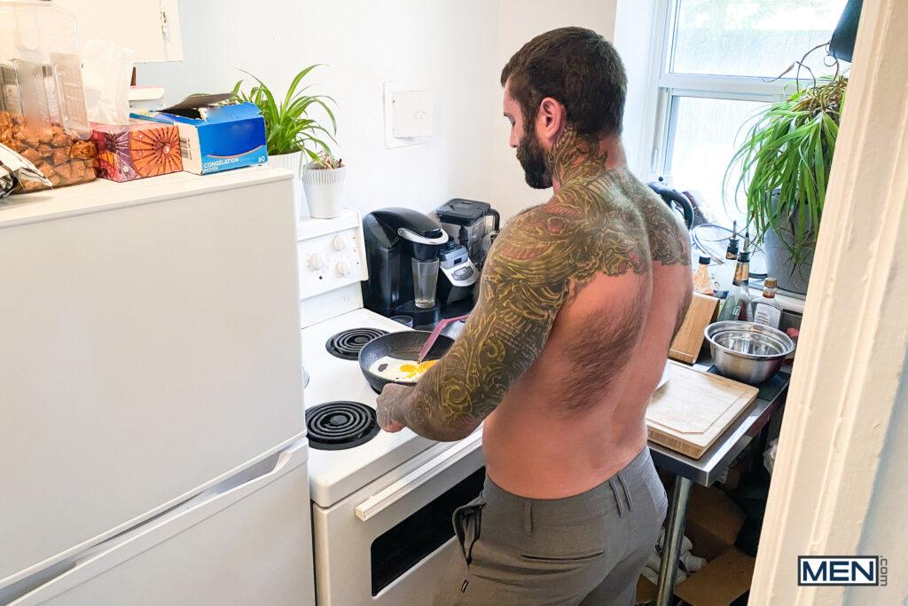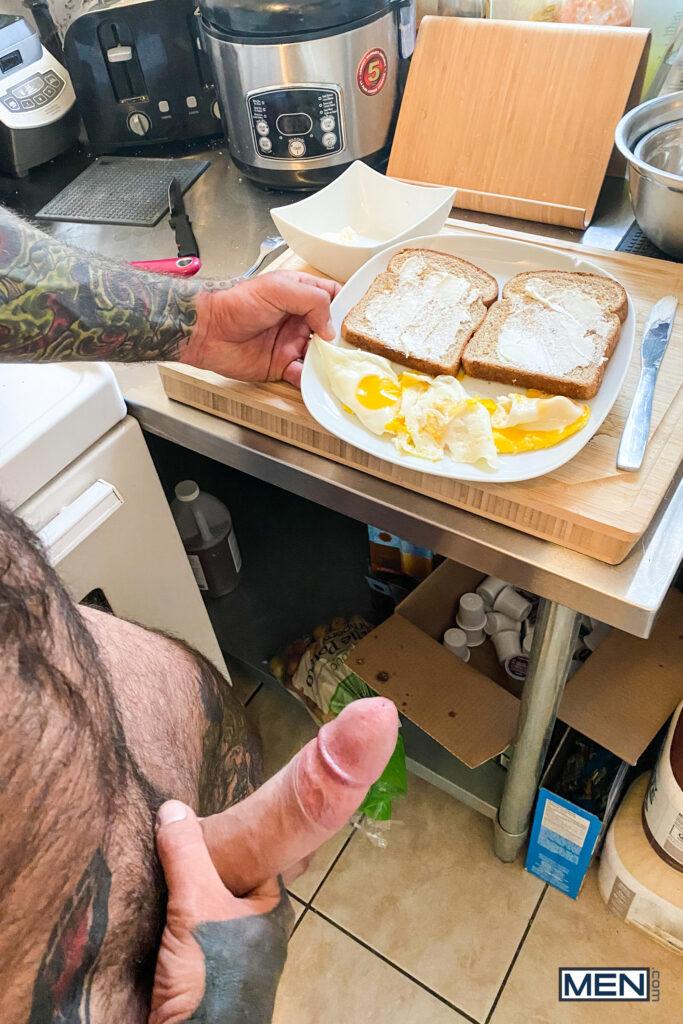 Markus Kage cooks up a special breakfast in bed for his man, Trent King, then serves it up with a smile and a hard cock. Trent thinks Markus’s sausage looks even more delicious than the eggs and immediately gobbles it down. Markus wants to add a little sweet treat to breakfast, so he squirts whipped cream on Trent’s big dick and devours it, then fucks Trent’s hole missionary and doggystyle. The bottom rides his boyfriend’s cock till he cums, then Markus fills Trent’s mouth with his tasty jizz and some more whipped cream. Breakfast is served!