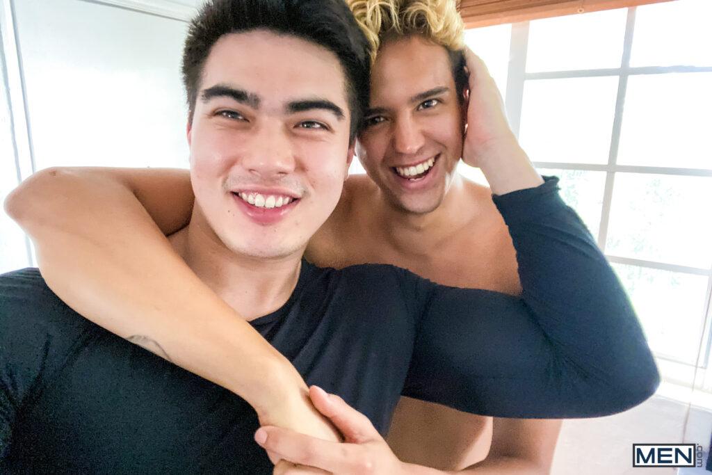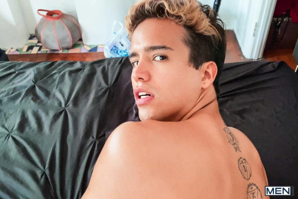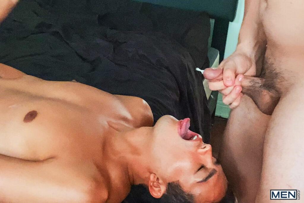 “When Axel Kane video calls his mom, she’s all worked up over minor gripes. It’s easy for Axel to stay chill while she complains, because he’s getting his cock sucked by his boyfriend, Johnny Cheeks! Axel hangs up so he can concentrate on the feel of Johnny’s lips and tongue wrapped around his dick, then has the bottom get on the bed on all fours so he can see his tight little hole and fuck him doggystyle. The top pounds Johnny’s ass in mish and gives him a facial, and Johnny jacks off till he shoots so far he nearly gives himself a second one!”