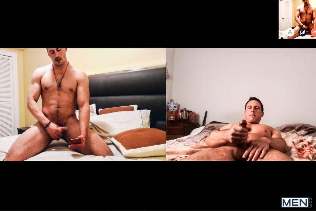 “Not only are pornstars working from home these days, castings are remote as well! When porn newbie Joey Steel asks Men.com regular Reese Rideout for some tips getting into the business, Reese is happy to set up a video call to give him some advice, as well as see what he’s working with. Joey’s a handsome dude with a hot body, especially his muscled ass and big dick, and as Reese sees Joey stroking himself, he wants to get in on the fun too. Reese coaches Joey to get the best close-ups of his cock as they jack off, and when Joey blows his load that’s all Reese needs to see to cum too.”