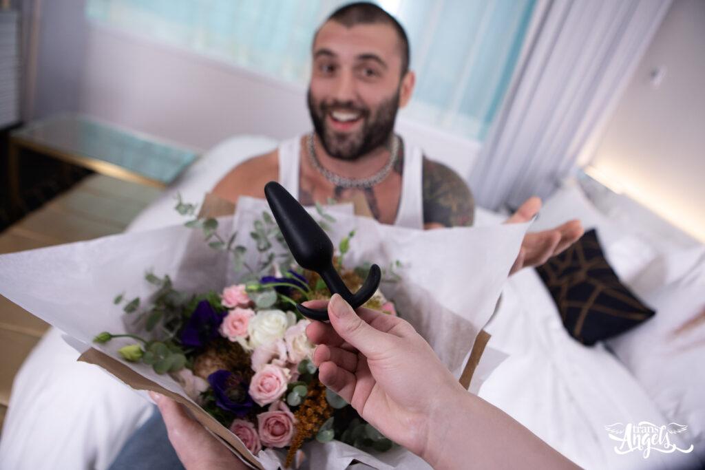 “Red-head beauty Evie Envy is taking her time getting ready for a rough and raunchy rumble with her next dick appointment, teasing herself in sexy black lingerie as she jiggles her big creamy tits. When her man for the evening calls she’s excited to pound some ass, but what she finds waiting for her is a beefy man who thinks he’s going to be slipping in between her cheeks. Evie corrects Markus’ mistake, filling his butt with a butt plug before teasing his cock with her tongue. Evie lets Markus worship her body, slurping on her cock as she dominates him before she bends him over and gives him the dicking-down that she’s been waiting for. Markus can’t get enough and Evie doesn’t stop until she’s shot a load all over Markus’s butt and is ready to kick him out of her boudoir.”