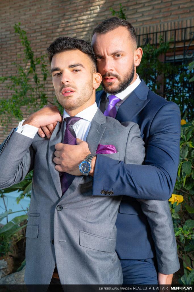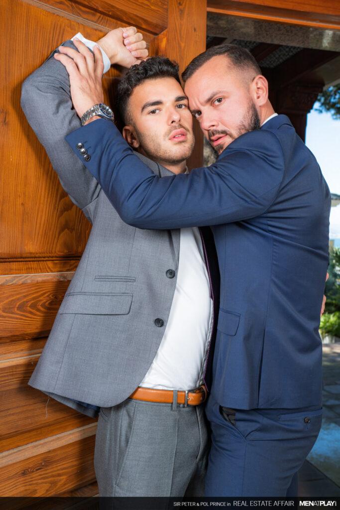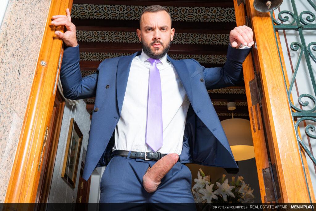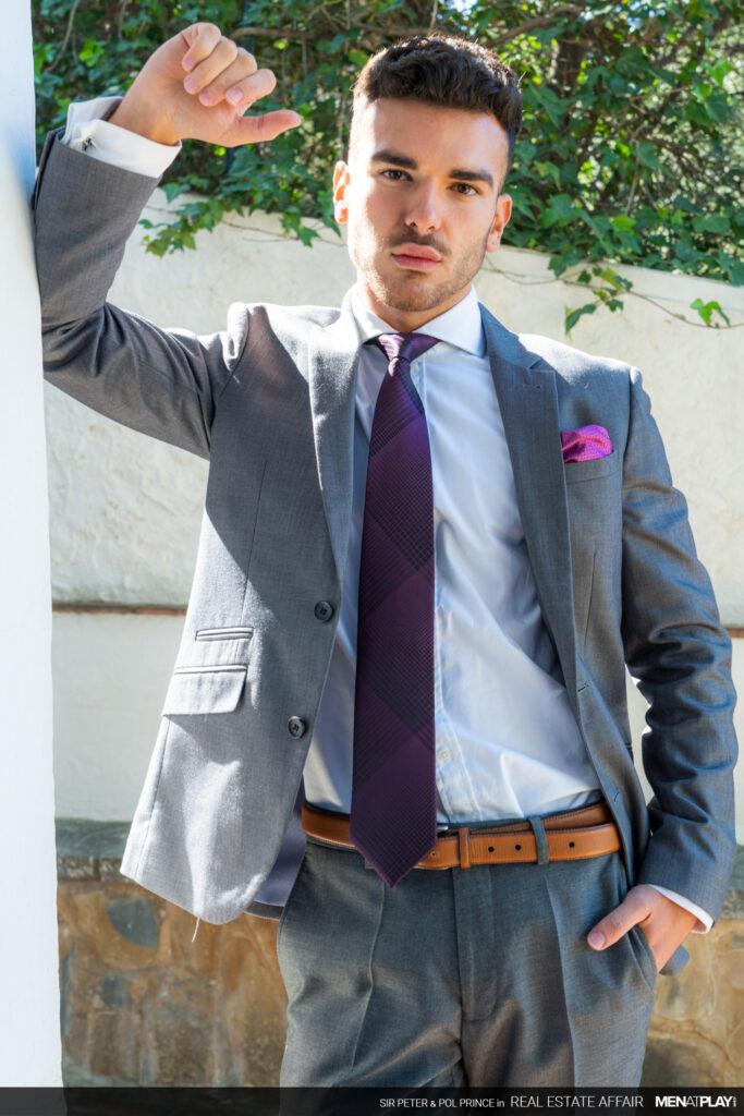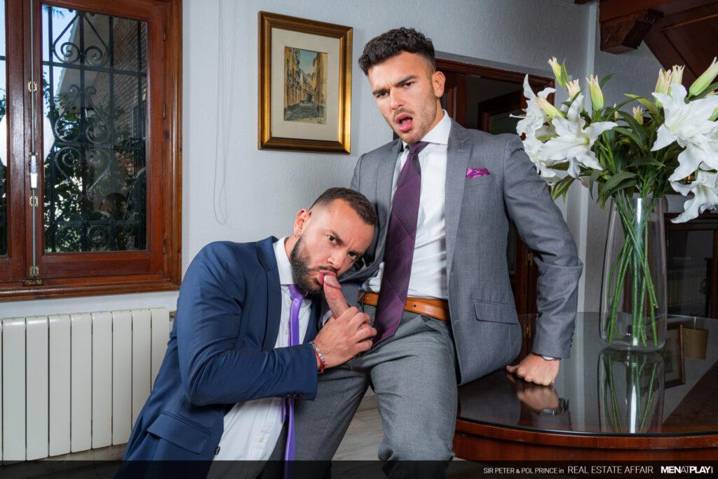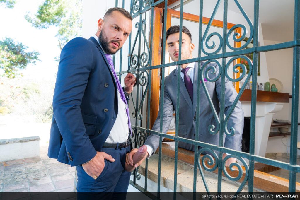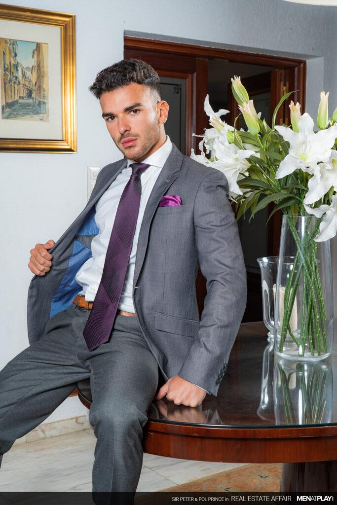 “Young high-end Real Estate agent, Pol Prince is giving his new client, Sir Peter, a tour of the perfect family home. But, Sir Peter is looking for a bachelor pad, as he is single. Following the house tour, Sir Peter takes a stroll through the outside gardens while considering the purchase. Pol is one hot stud – and while spying on him through the window, Sir Peter begins to jerk off until he’s caught. Pol knows that a satisfied client almost always guarantees the sale – so he’s ready to play and please!”