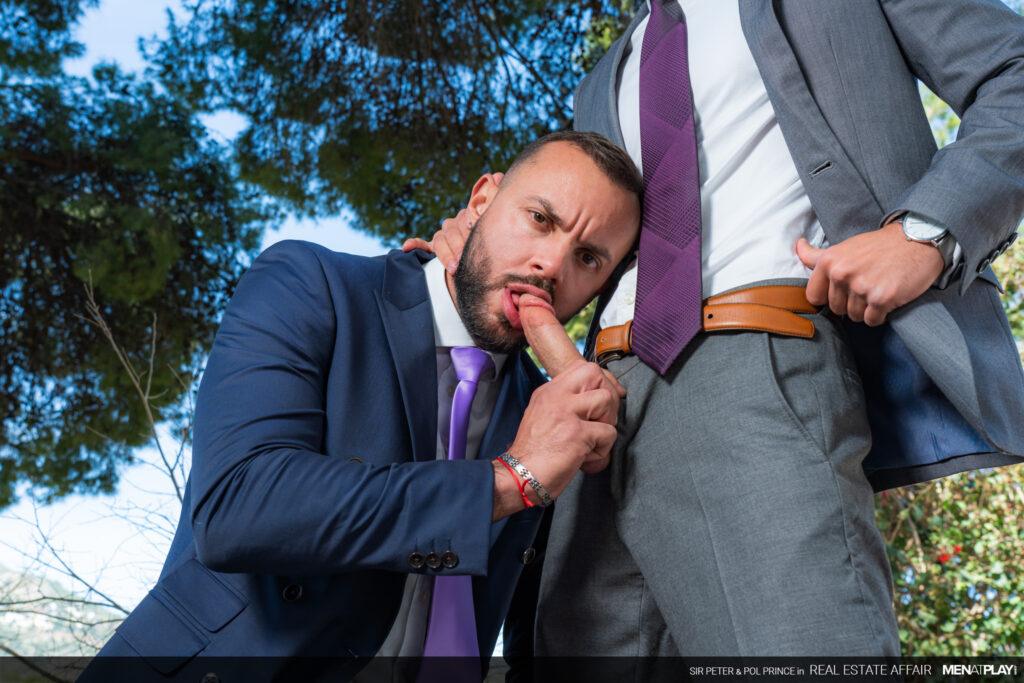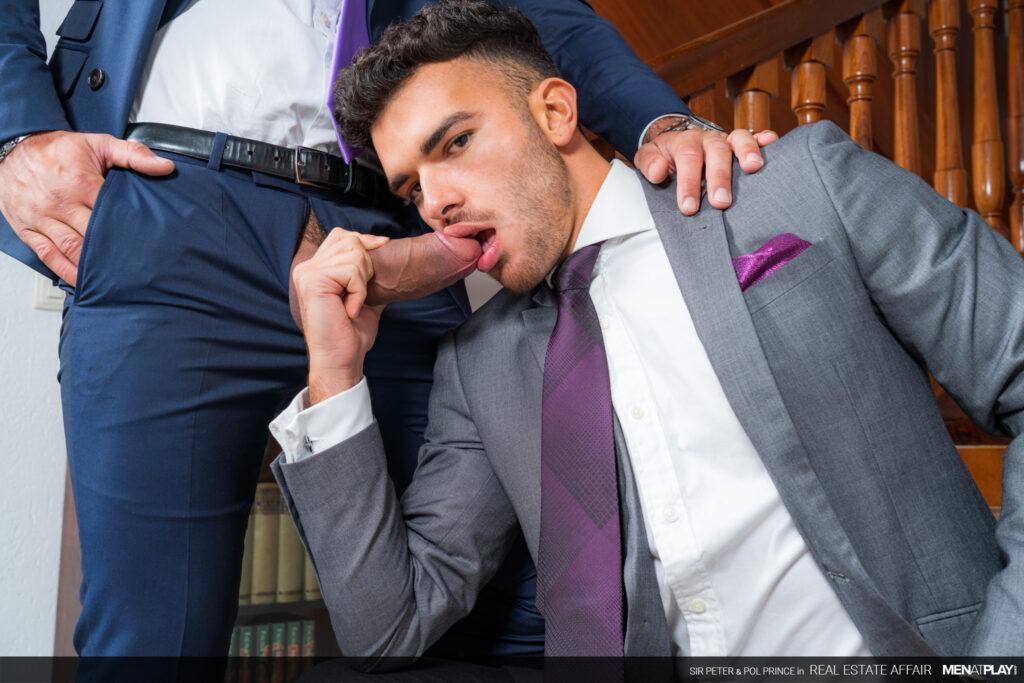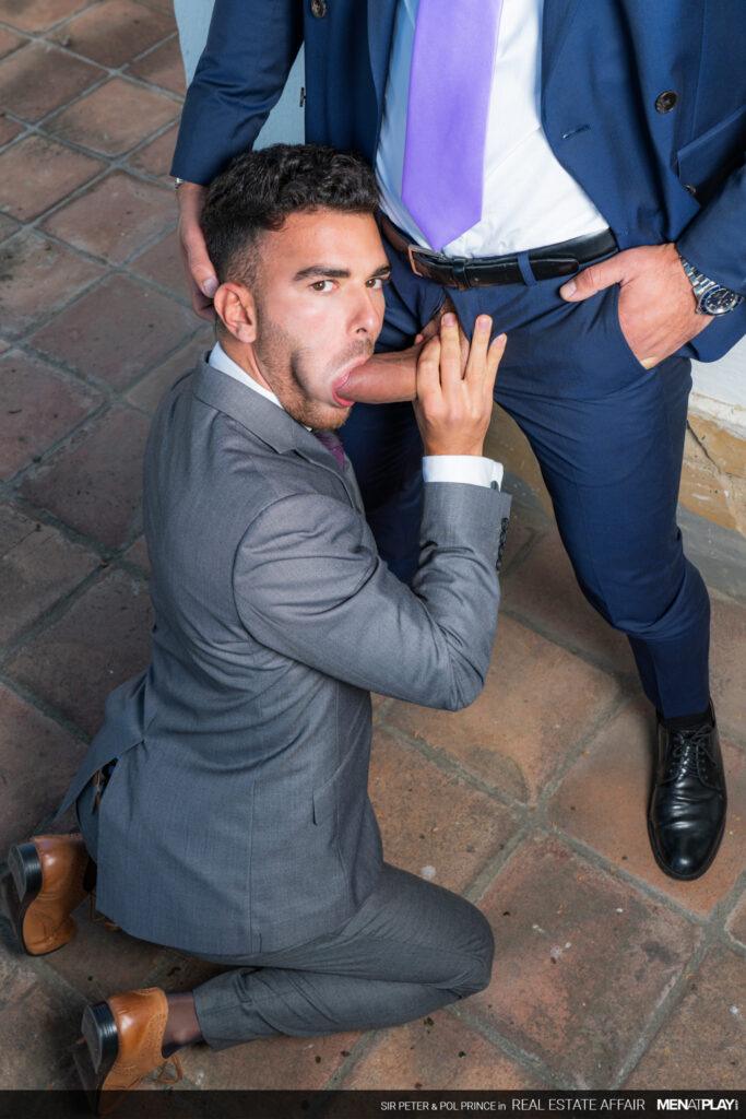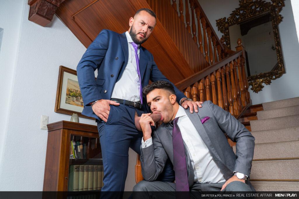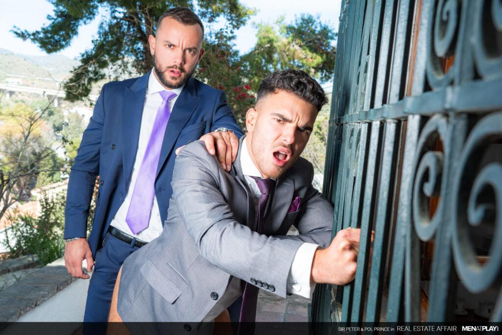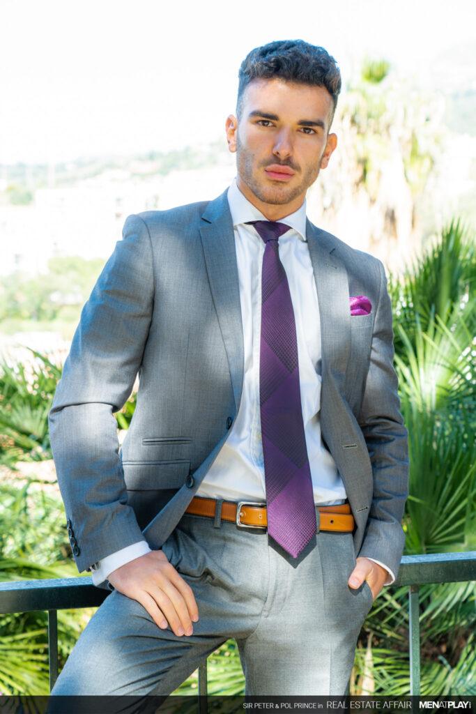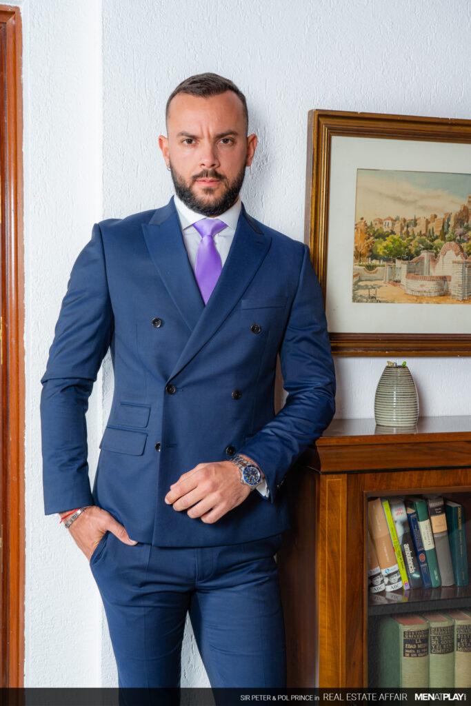“Young high-end Real Estate agent, Pol Prince is giving his new client, Sir Peter, a tour of the perfect family home. But, Sir Peter is looking for a bachelor pad, as he is single. Following the house tour, Sir Peter takes a stroll through the outside gardens while considering the purchase. Pol is one hot stud – and while spying on him through the window, Sir Peter begins to jerk off until he’s caught. Pol knows that a satisfied client almost always guarantees the sale – so he’s ready to play and please!”
