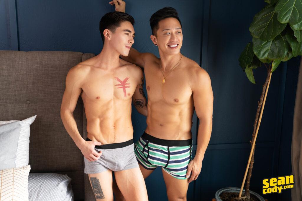 “We kept it a secret as long as we could, but Dale’s partner for his first scene back at Sean Cody is… Cody! And the funny and flexible hunk is super excited about it. Dale says, “I was driving up behind him and he jumped out of the car and I was like, ‘SHUT UP. Yes! Yes!’” Cody is just as thrilled to be paired with Dale: “Dale is SO hot. So handsome, so built, I’m really excited to just hang out with you today.” The chemistry between these two is palpable as they cuddle, and they decide who gets to top first with a game of Rock, Paper, Scissors. Although Cody wins the right to top Dale first, as they get naked and passionately kiss, Cody changes his mind because he wants to sit on Dale’s face and then his cock! Dale fucks Cody missionary, and then it’s time for these hotties to flip as Cody pounds Dale in piledriver till they both cum. These guys still can’t get enough of each other, so keep watching for round two!”