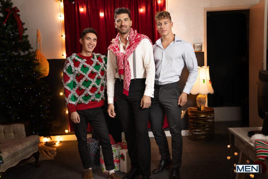 Cody Seiya and Chris Damned are hot for their boss Felix Fox at the office holiday bash, but they’re going to need more than a little mistletoe to turn this Xmas party into an XXXmas party. Cody crawls under the podium while Felix gives his speech to suck the boss’s cock, then Felix fucks the bottom doggystyle. Chris follows the horny pair into another room, giving Felix the best of both worlds as he rims and then penetrates him! Chris gets a chance to fuck Cody’s hole as well, then this lucky boss cums with Chris’s cock in his ass before taking hot loads from both his employees!”