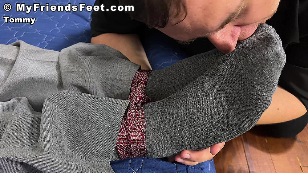“Matt finally has what he wanted – furry muscle cub Tommy is tied up and gagged in his apartment. Matt decided to borrow Tommy just for a while so he can play with his socked feet. Those loafers slip off so nicely and his grey dress socks look fantastic on his feet! Surely Tommy won’t mind if Matt takes off his socks too. And maybe his shirt…”