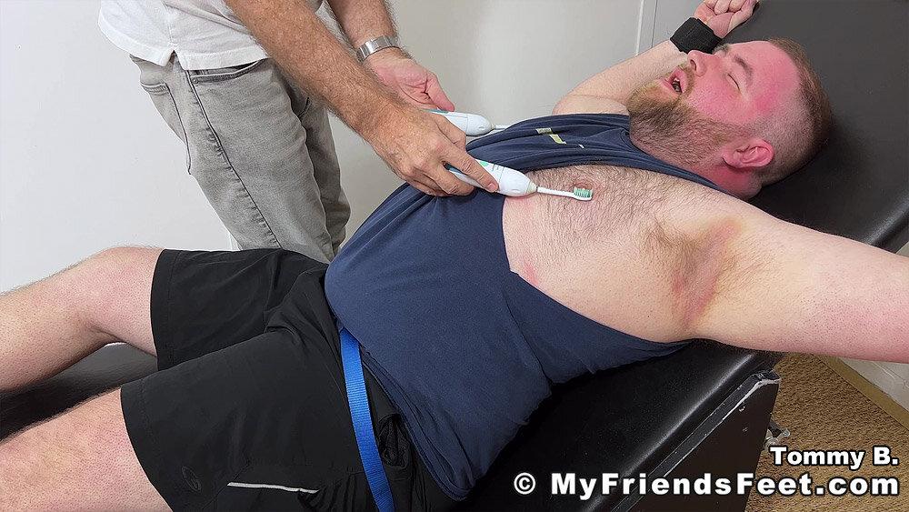“Tommy Bearhama was in town so Matt and I had the pleasure of tickling him in the chair. This hairy cub is ticklish everywhere and we all had a blast. The tickling gets Tommy very excited as you can see…”