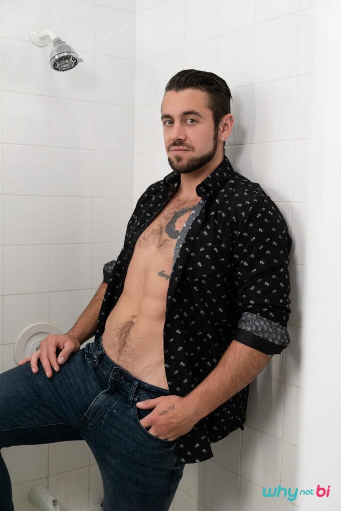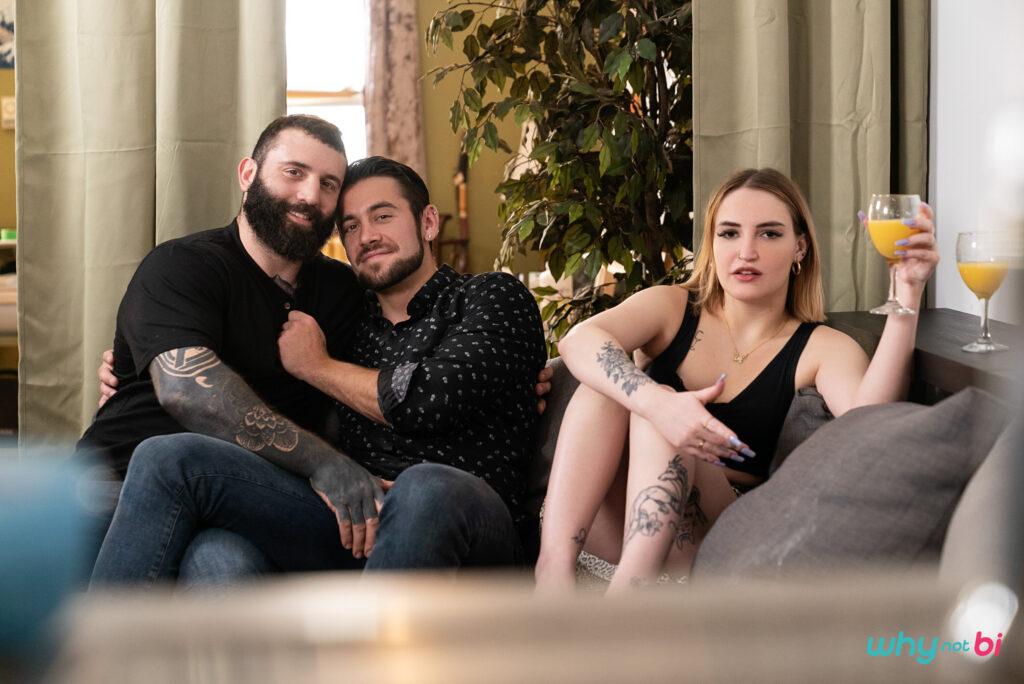 “Nina Rox is a bit annoyed when her roommate Markus Kage’s boyfriend Dante Colle comes back unexpectedly, interrupting their hangout time… especially when Markus starts sucking Dante’s cock right in front of her! But really, Nina is jealous, so she follows the guys to the bathroom and peeks through a hole in the shower curtain as she plays with her pussy. As Dante rims Markus, she starts sucking the top’s cock through the hole, then backs her pussy onto his cock! Markus catches Nina rimming his man as Dante fucks him doggystyle, and tells her to join in for a wet shower threesome! Nina gobbles both cocks, then the guys take turns pounding her pussy as she sucks them, till Nina takes a creampie from Dante and he sucks out his load, then eats Markus’s cum off her tits.”