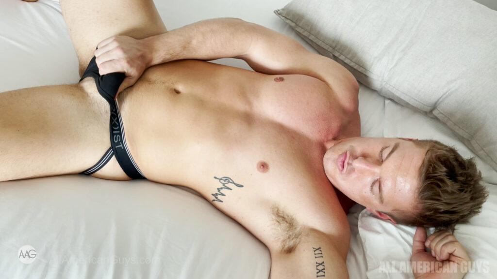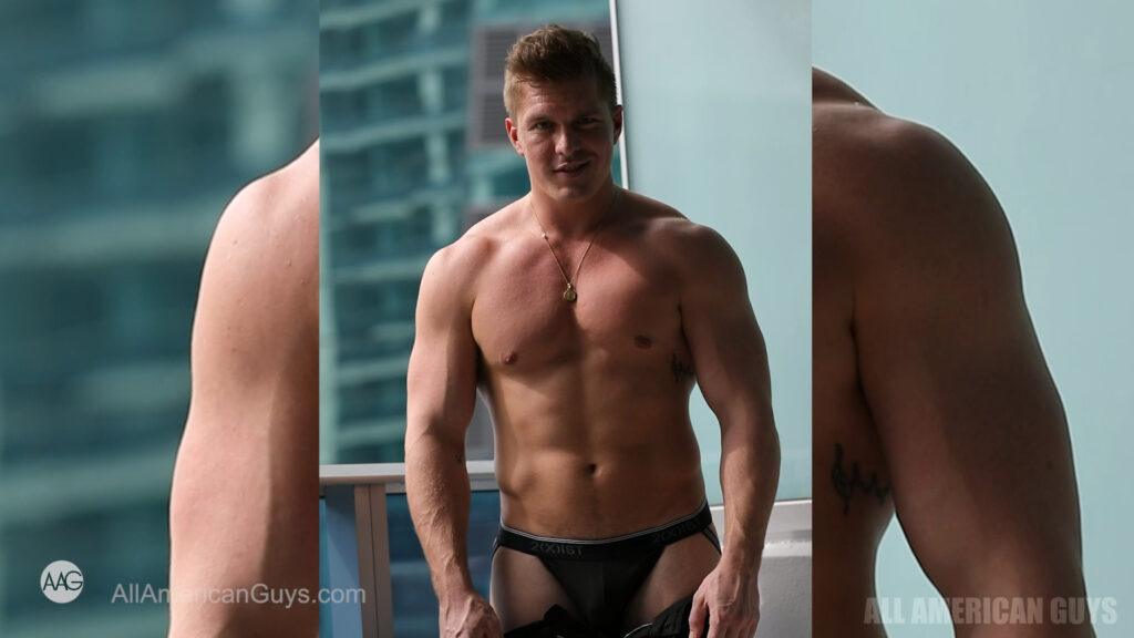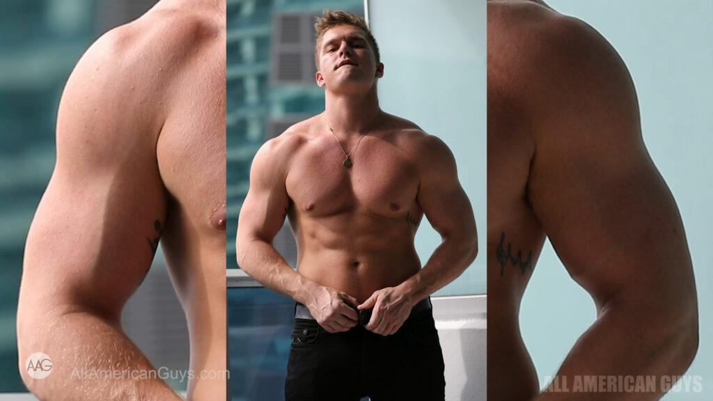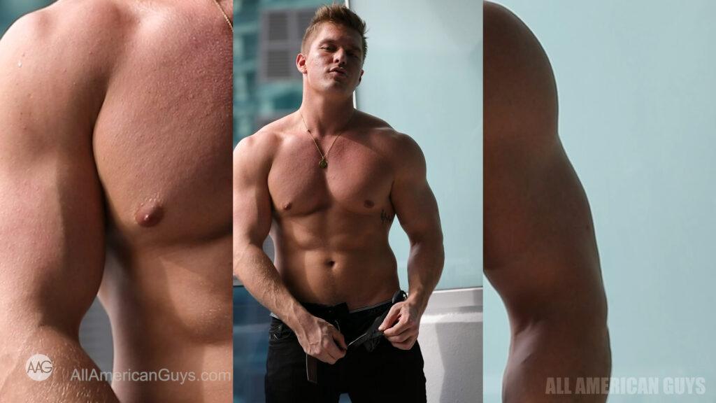 The uninhibited Drew H. wants you to join him in bed. Are you game? This blonde bear came ready with the sex appeal. This has everything you will love from flexing, sensual bed play to steamy shower hotness. He starts on his balcony with a strip tease and flex show….