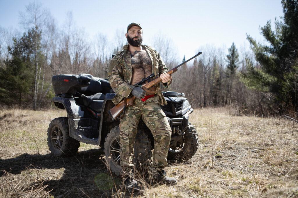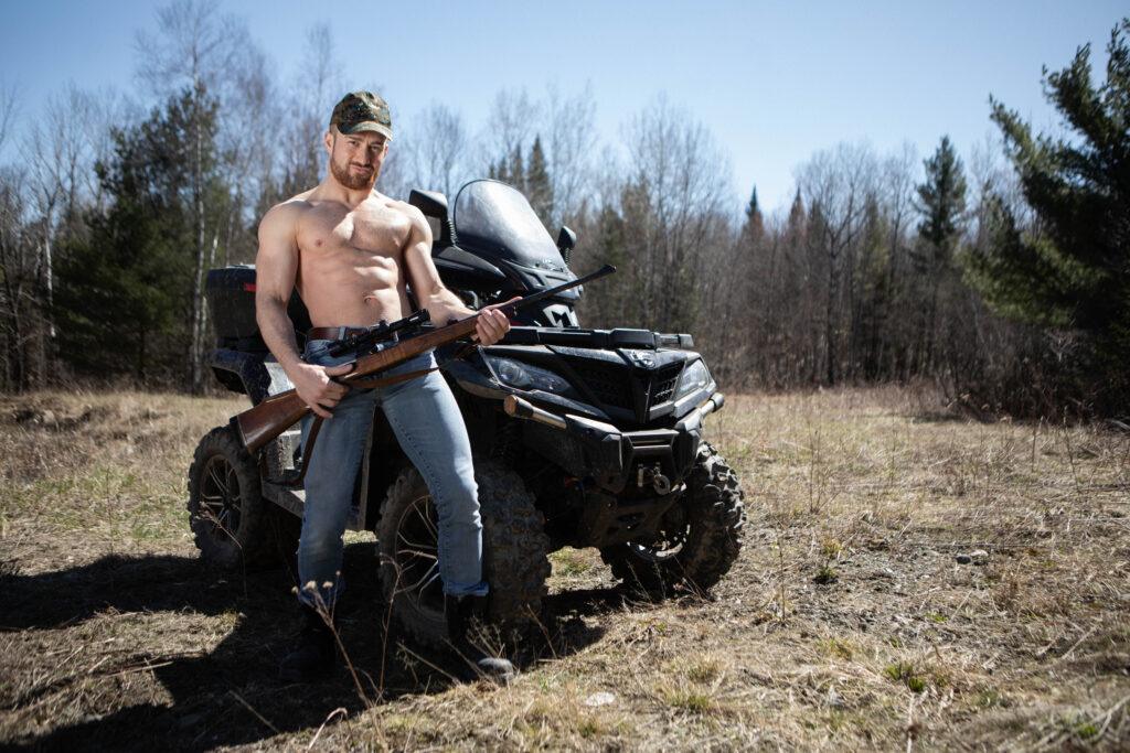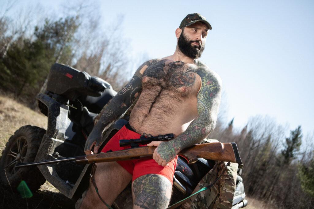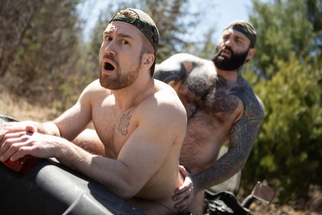 “Instead of hunting big game, dirty hunters Markus Kage and Olivier Robert are looking for big bottoms! Olivier lets Markus use his ass as a tripod, but the booty they were looking for slips away into the trees. Markus gets hard watching Olivier’s bare rump as he answers the call of nature, and Olivier hungrily devours that rifle before they find some privacy on their four-wheeler for Markus to pump the bottom’s hole full of cum!”