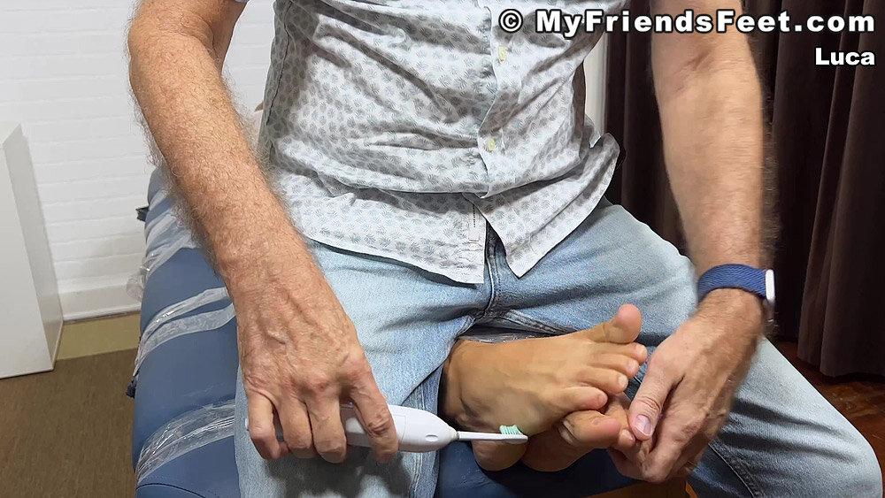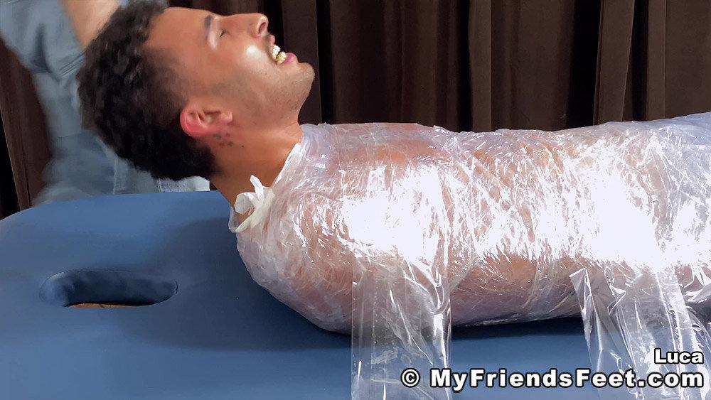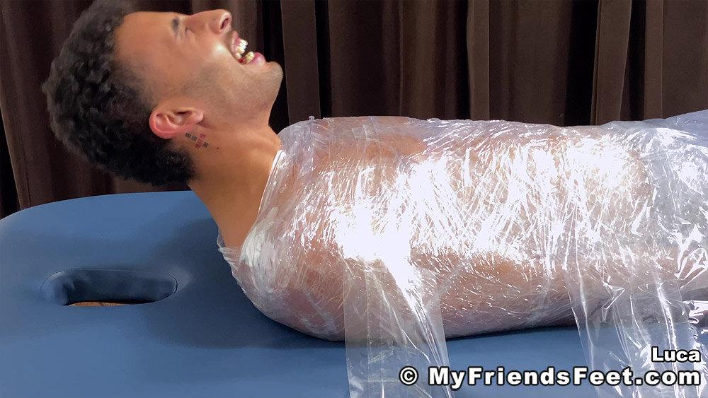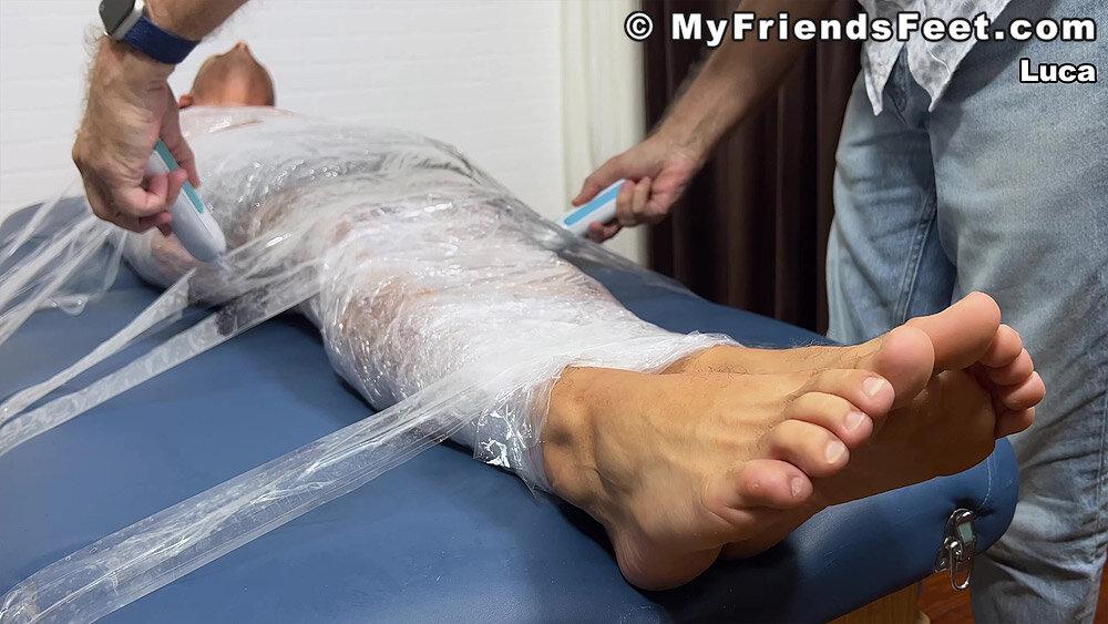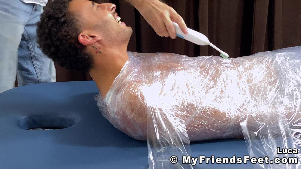 “The best things take time. Like the time it took to wrap Luca up and strap him to the table with just his head and feet showing. Then, it was time to tickle! He got it all, fingers, a feather, a hairbrush, a toothbrush. The vibration of the toothbrush was the worst, so of course, I had to bring out a second one and use two of them at once!”
