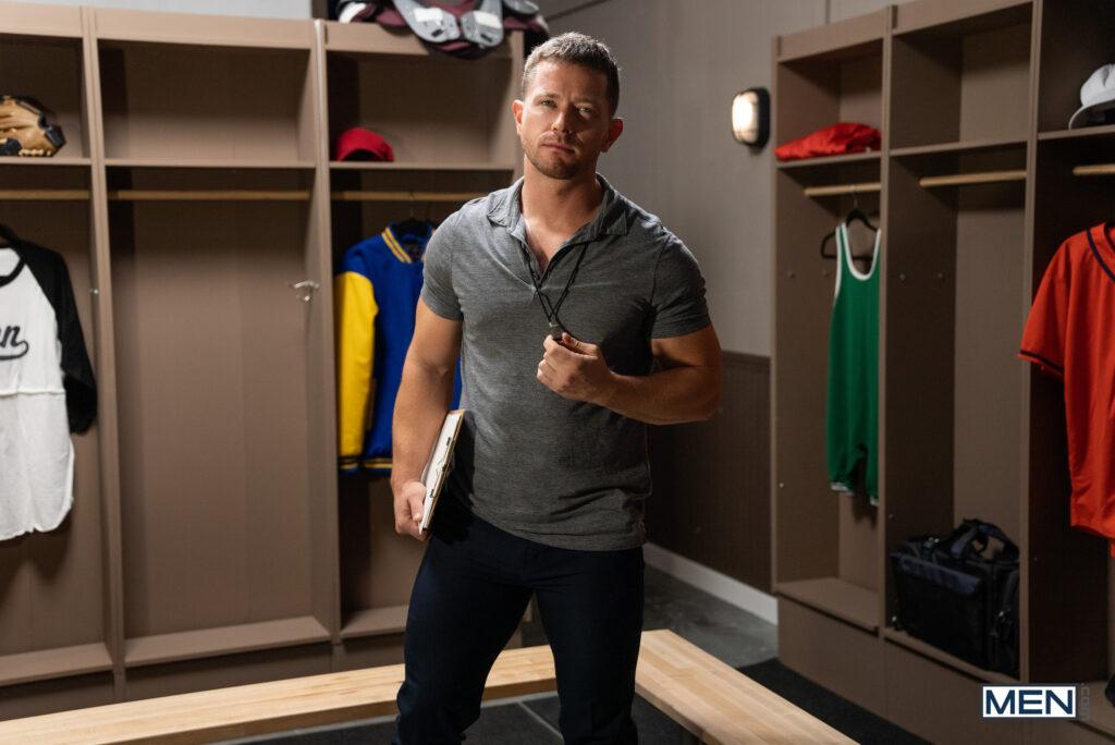 “Triumphant after winning his match, wrestler Drake Von wants to celebrate with his hot coach! But Johnny Donovan is so preoccupied with his clipboard, he barely even looks as Drake puts his jock strap on his head and shakes his boner around in his singlet. Drake offers the stressed coach a full-body naked massage and gets Johnny’s attention as he strips too, then puts the jock on. The guys suck each other’s cocks, then the athlete rims his coach and fucks his hole! Drake bends his coach over to pound him doggystyle, and Johnny rides the top till he fucks the cum out of him, then empties his balls on Drake’s face.”