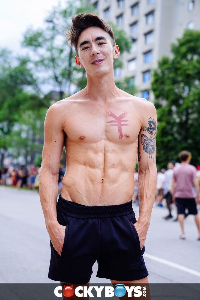 “Cody Seiya has a Montreal Pride experience to remember thanks Angel Elias who accompanies him during the festivities and then takes him home for a post-pride fucking! Inside they’re all over each other, passionately making out in bed, and getting naked, and brazenly going at it right next to the open windows. Cody is especially wild about Angel’s big dick, sucking him as deep as he can and craving to have it inside him.