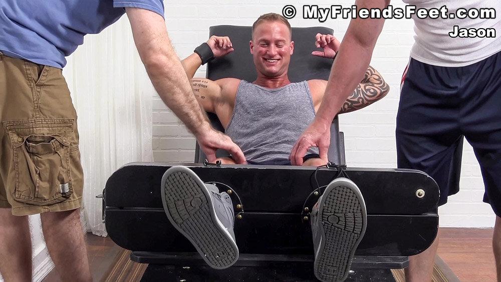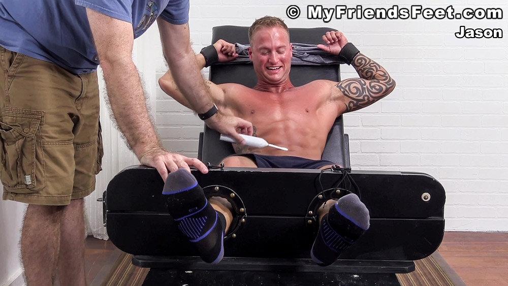 “I finally convinced Jason to do a tickling scene for Myfriendsfeet. He’s been tied and worshiped before, but never actually tickled. He pulled his one restraint off and thought he was stronger than he thought. He should have run away when he had the chance because Dev and I worked his entire body over from his pits to his size 10 feet. I think his favorite was the electric toothbrush. Just had to make sure he brushed today!”