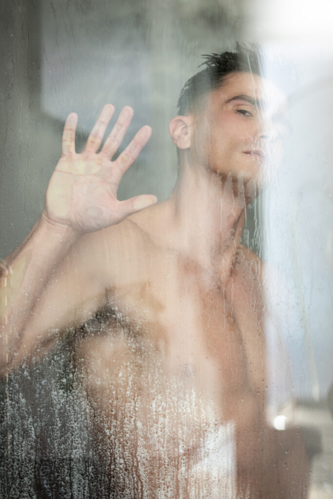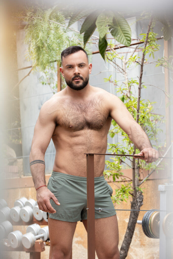 “Sir Peter is pumping iron at his outdoor gym when he’s joined by Thomas Johnson. The guys make heated eye contact and take off their shirts, giving each other a preview of their hard muscles. They link up in the shower, where they kiss under the flowing water and Sir Peter pins the bottom against the wall. Thomas strokes the top’s cock and drops to his knees to suck it, then Sir Peter rims the bottom and fucks him doggystyle. Sir Peter sucks Thomas, and the bottom rides him on the floor, jacking himself till he orgasms, then Sir Peter cums on his face.”
