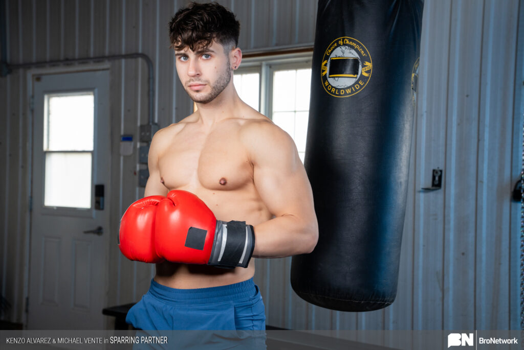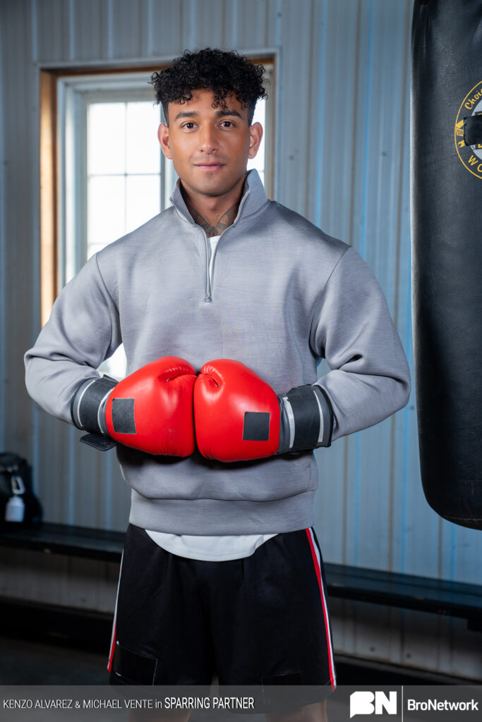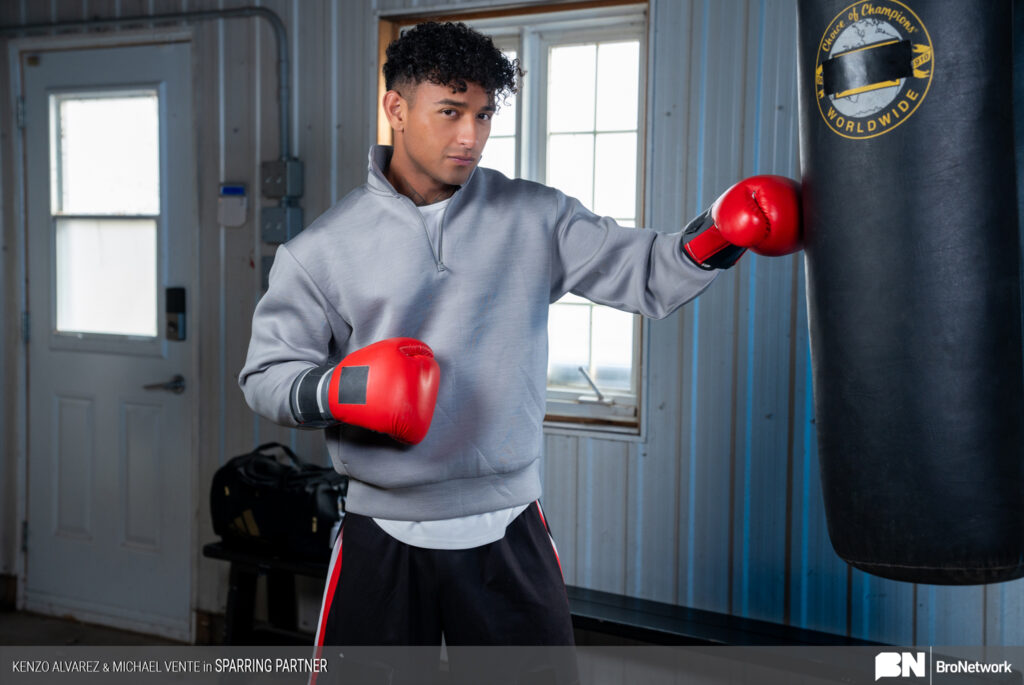 “Michael Vente meets Kenzo Alvarez in the garage for some 1-on-1 training. The garage is cold, but Kenzo assures him he’ll warm up quickly. Michael changes from sweats into gym shorts, and they start with a few warm-up exercises before a bit of stretching. Once they’re good and warmed up, they practice with the punching bag and training gloves.