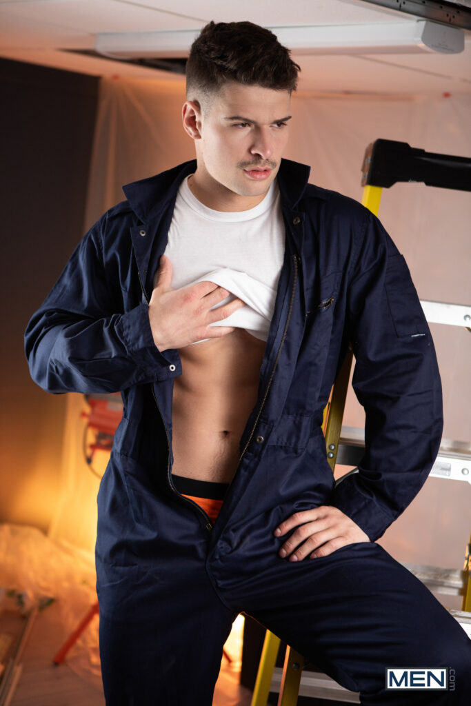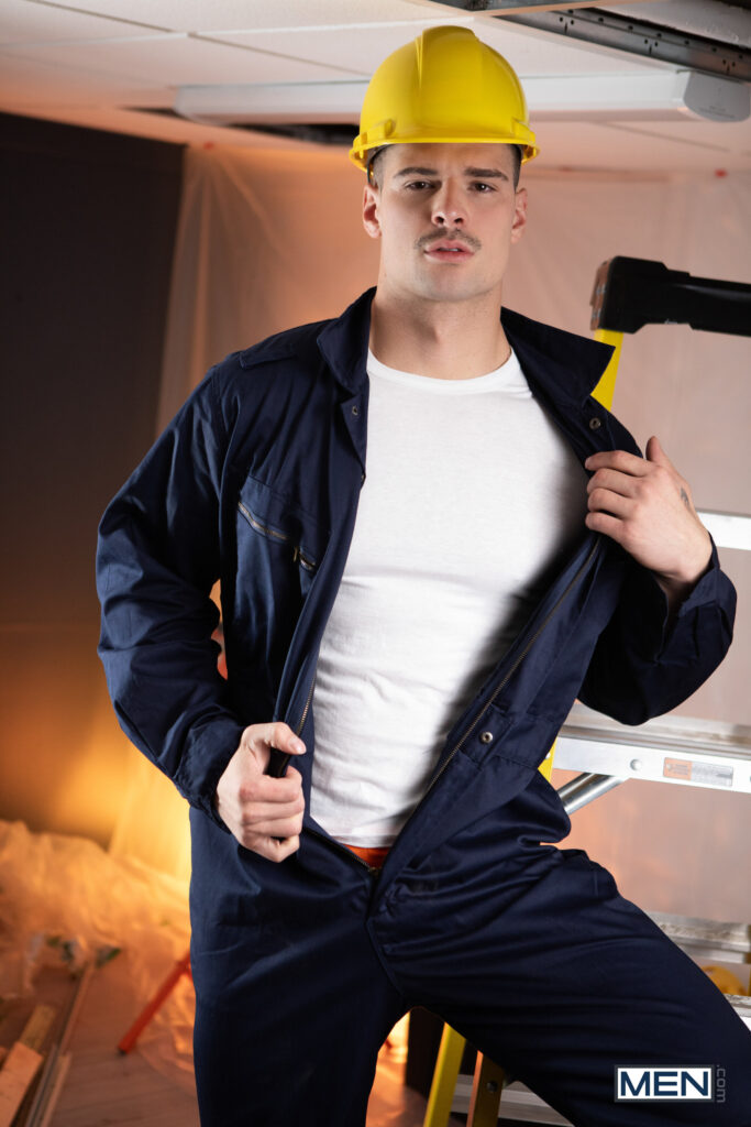 “Michael Vente is new on the job site, and the more he watches experienced hunk Malik Delgaty at work, the more he wants a fuck break. When Malik goes up a ladder and his hard dick slips out his coveralls, Michael finally gets his chance to suck it, and then the top bends him over the ladder to fuck him! Michael rides the big dick and gets pounded in piledriver, then fucked hard on the floor. The bottom cums as Malik drills him in doggystyle and the top cums on his eager face.”