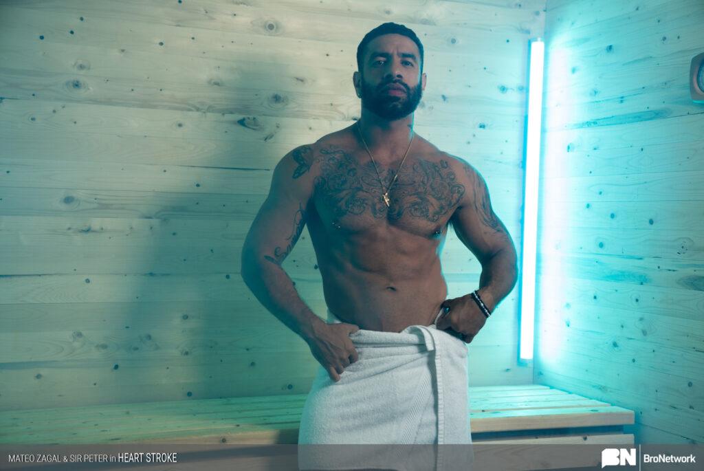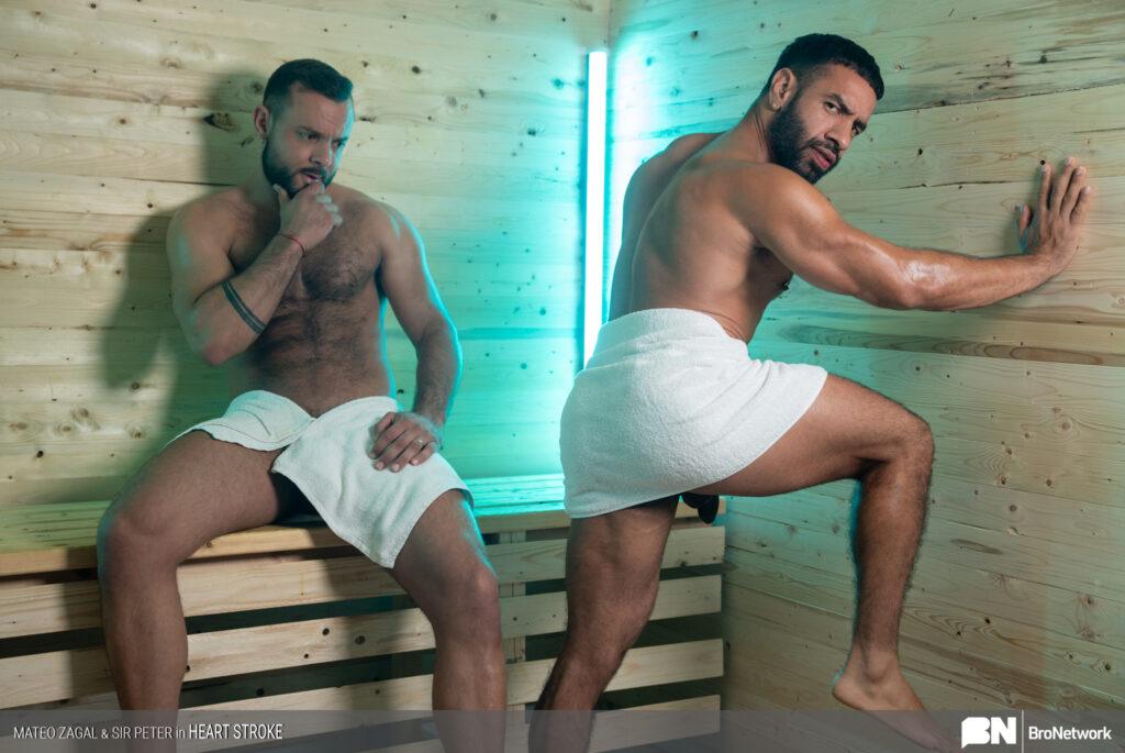 “Mateo Zagal is taking advantage of the heat to amp up his workout and maximize the burn. When he’s joined by Sir Peter in the sauna it’s no reason to slow down his frenzied workout. Although Sir Peter is mildly annoyed, Mateo gives him a sexy show showing off his beautiful muscular body. But when the muscular stud gets dizzy from heat exhaustion Peter is there to get him back in order. Peter is noticeably turned on and these gorgeous studs fuck and suck each other in a fantastic flip-flop fuck!”