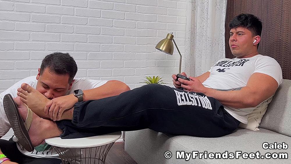 “Caleb is busy playing his 80’s racing video game. He’s so distracted that when Dan asks if he can worship his feet, Caleb quickly says yes just to keep playing in peace. Fresh out of his flip-flops, Caleb’s size 11 feet smell and taste delicious. Dan seizes this moment. He knows he’s qualified – and now he’s in the Sole Position!”