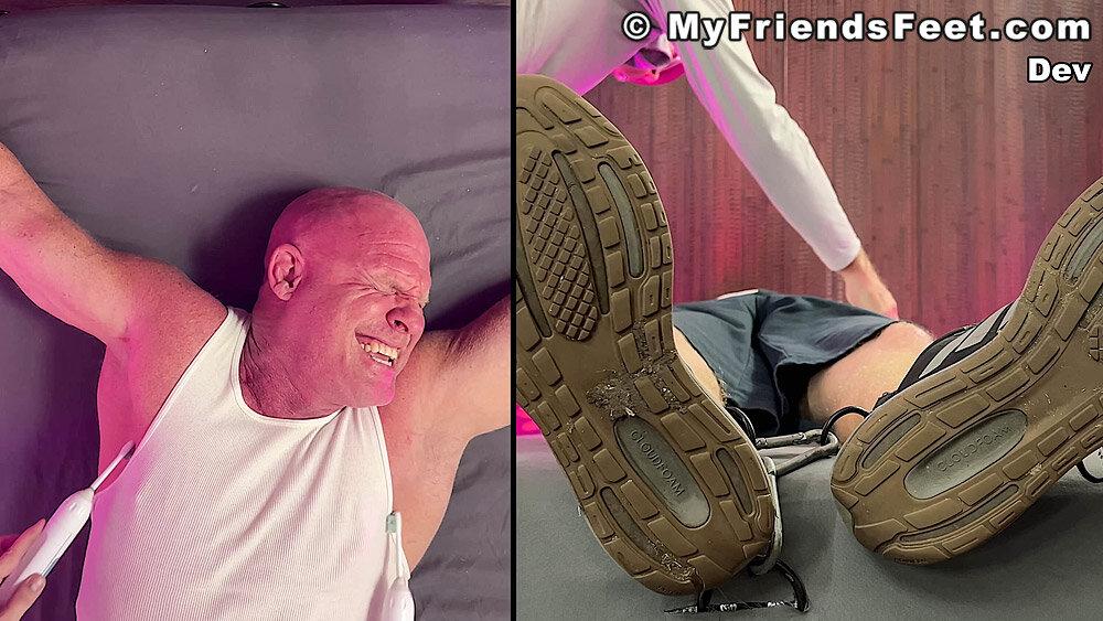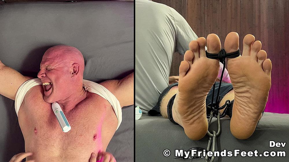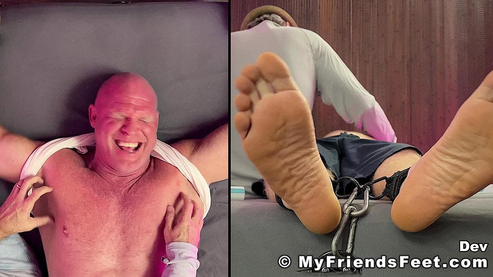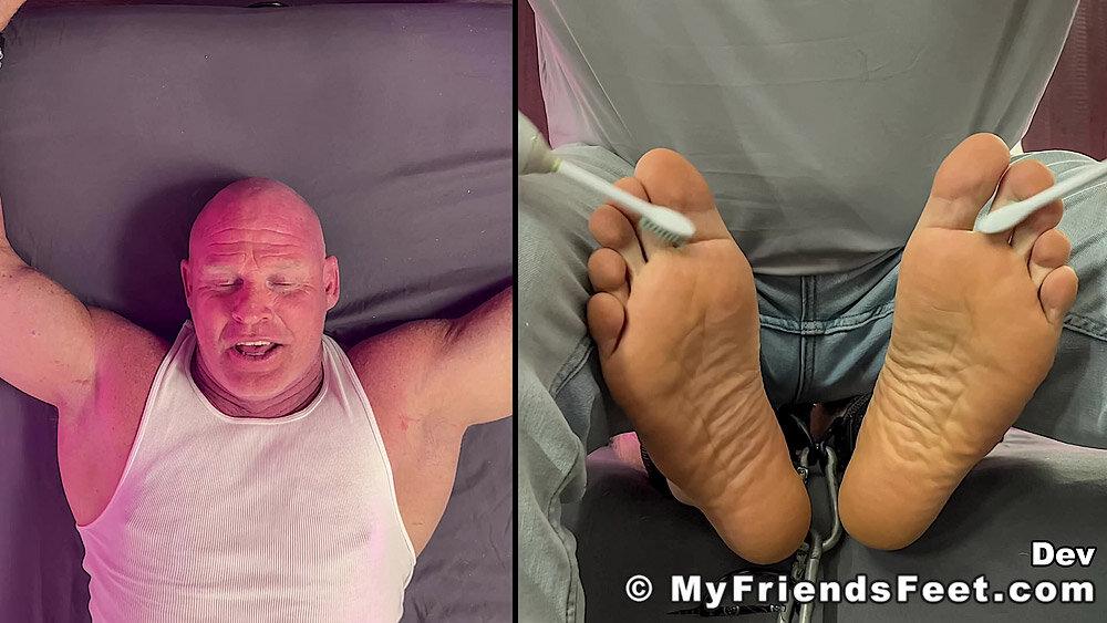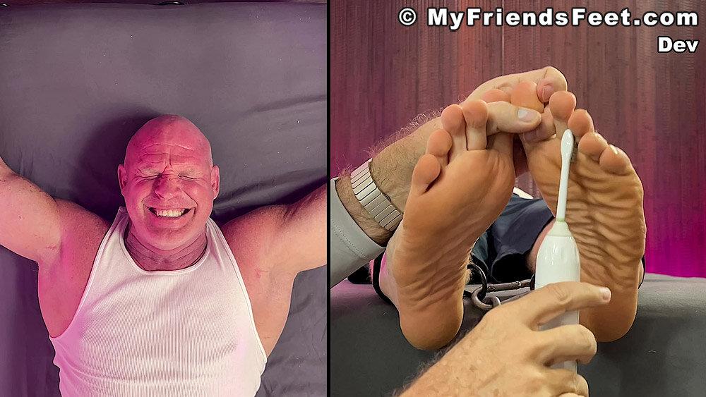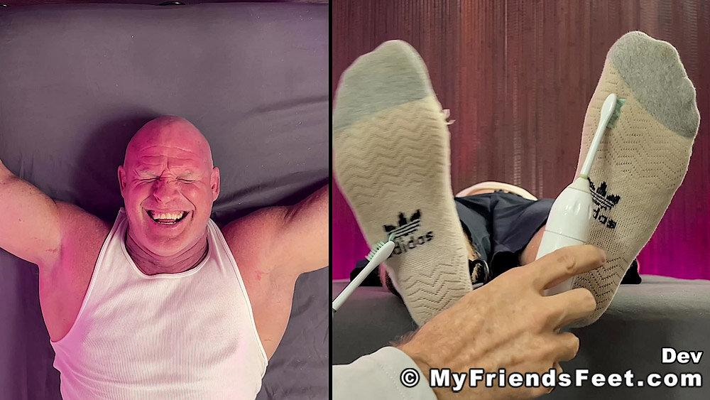 “‘I’m not laughing today!’ Yeah! Well, looks like that was a lie! Dev is restrained with his arms above his head and simply using the electric toothbrushes gets the giggles rolling. I make sure to work Dev’s entire body from his pits to his feet. No where for you to go Dev! We get to see all of your reactions as well with the split screen! Happy Tickles, Dev!”