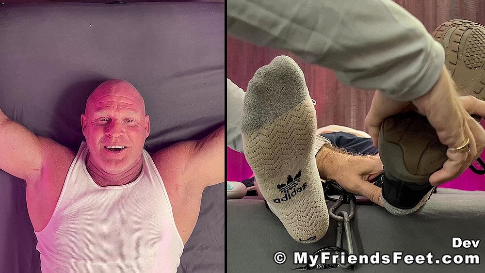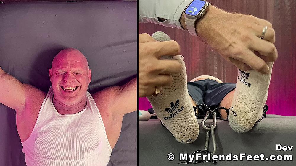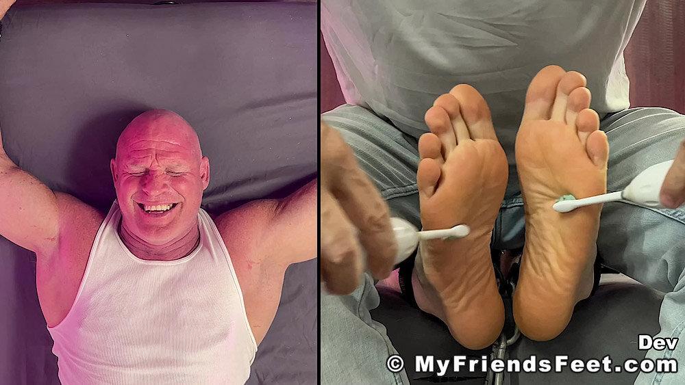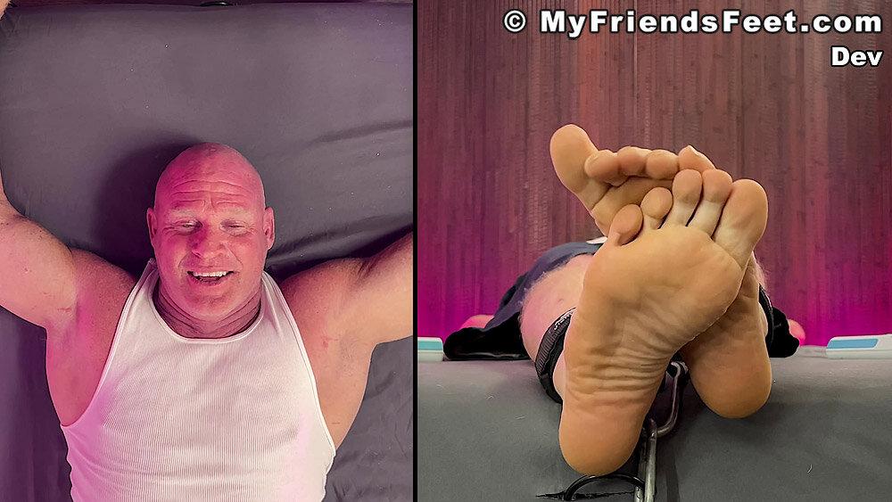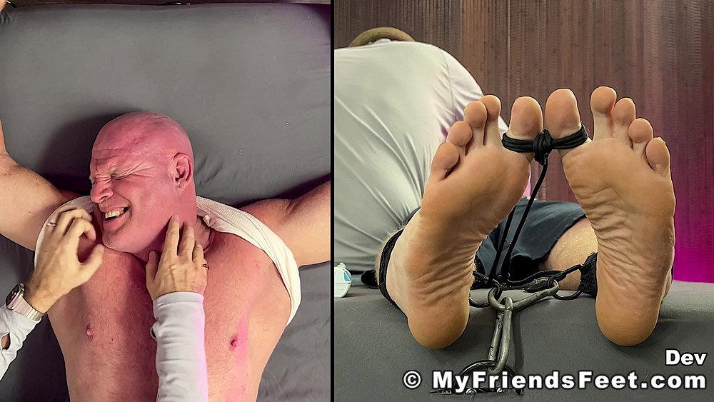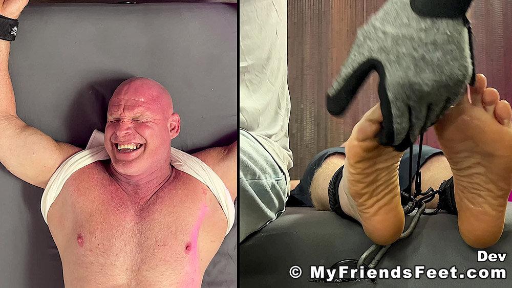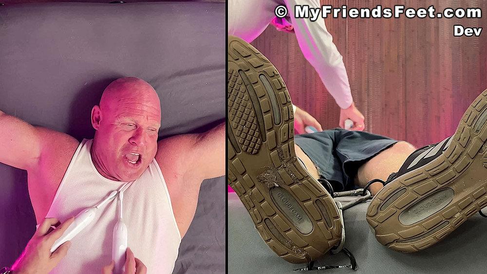 “‘I’m not laughing today!’ Yeah! Well, looks like that was a lie! Dev is restrained with his arms above his head and simply using the electric toothbrushes gets the giggles rolling. I make sure to work Dev’s entire body from his pits to his feet. No where for you to go Dev! We get to see all of your reactions as well with the split screen! Happy Tickles, Dev!”