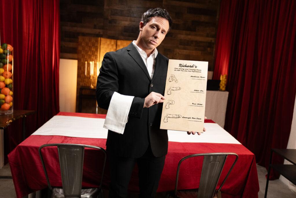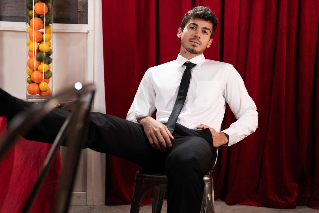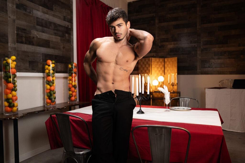 “Shamu Azizam is thrilled to finally experience the fine dining tasting course. Sommelier Reese Rideout presents the menu of options, and Shamu makes a hard selection: Ashton Summers! Reese tucks Shamu’s napkin into his collar as the guest takes in the aroma of the cock, then joins Shamu in sucking Ashton. Shamu compares the mouthfeel of Reese’s cock, then fucks Ashton’s mouth while Reese eases inside the waiter’s hole. Then it’s time for the main course as Shamu bends Ashton over the table to get spit-roasted. The men form a train, then Ashton and Reese double-penetrate Shamu to ensure he’s full and satisfied with his experience!”