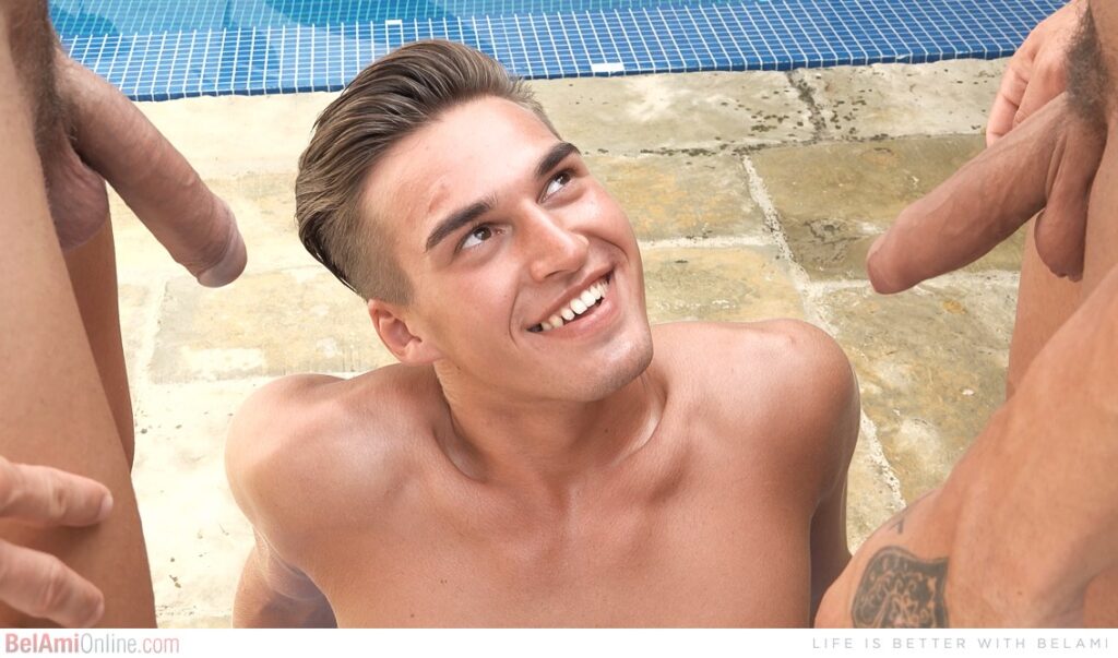 “So as we draw to the close of our House of BelAmi special, we have Bobby, Kyle and Virgil in this hot 3some. Our Czech and Slovak pair of beefcakes are the tops in this encounter as they tag-team our Eastern European import, Virgil. We guess that everyone is a winner here and gets to perform in their favorite positions! Next up we have our final scene with Bobby coming back for the finale together with Ethan Opry.”