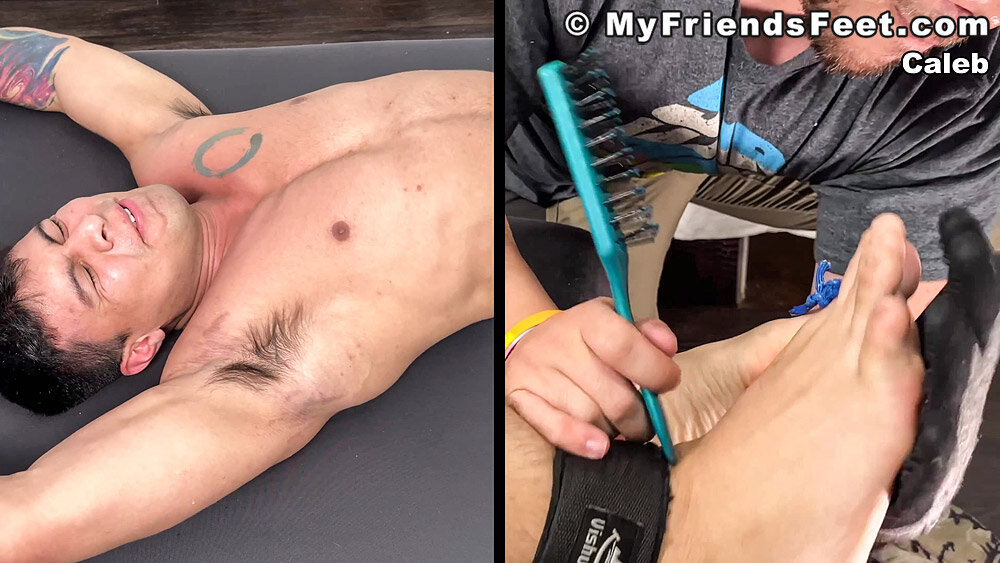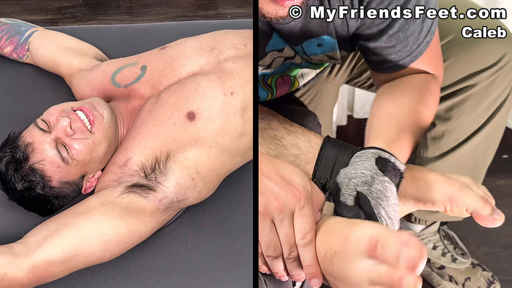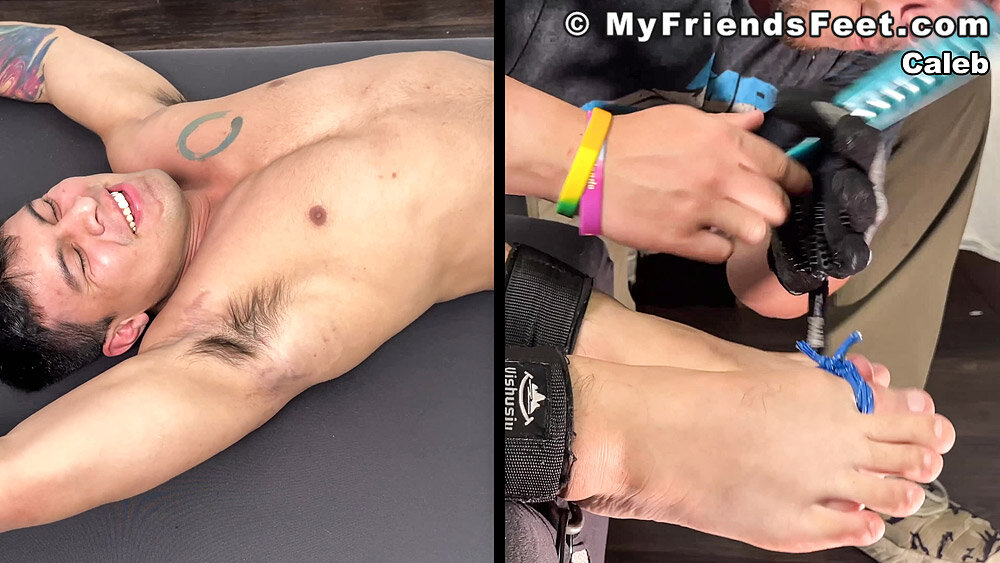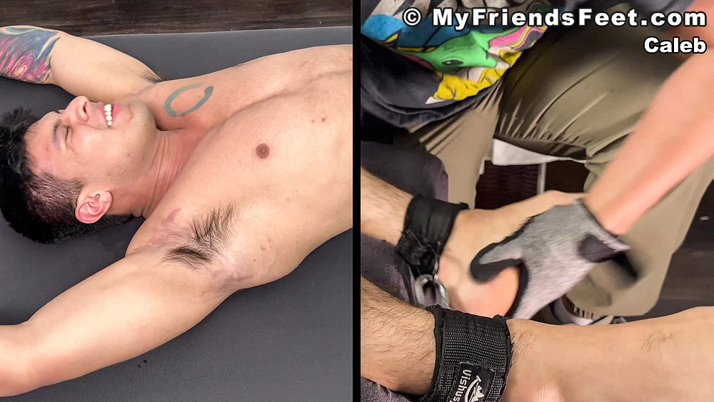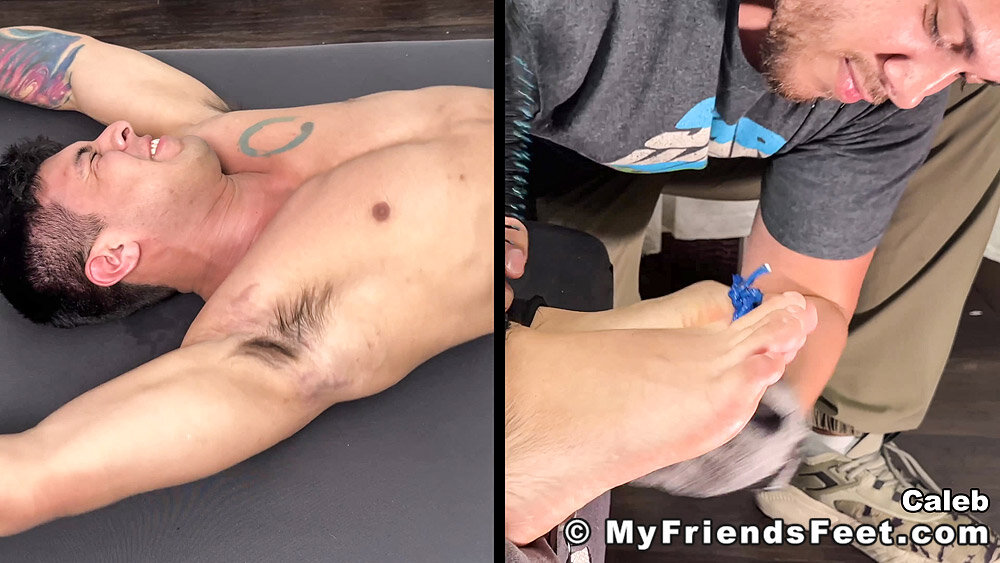 “Caleb is strapped down to be tickled and Dan starts in on his upper body with no reaction. Uh oh! But then when Dan moved down to Caleb’s feet, the flood gates of laughter started pouring out of Caleb. He has such a cute laugh and smile as well! How could Dan not continue to tickle his feet? Caleb almost got out, but Dan was able to get him right back where he wanted him. Nice try, Caleb!”