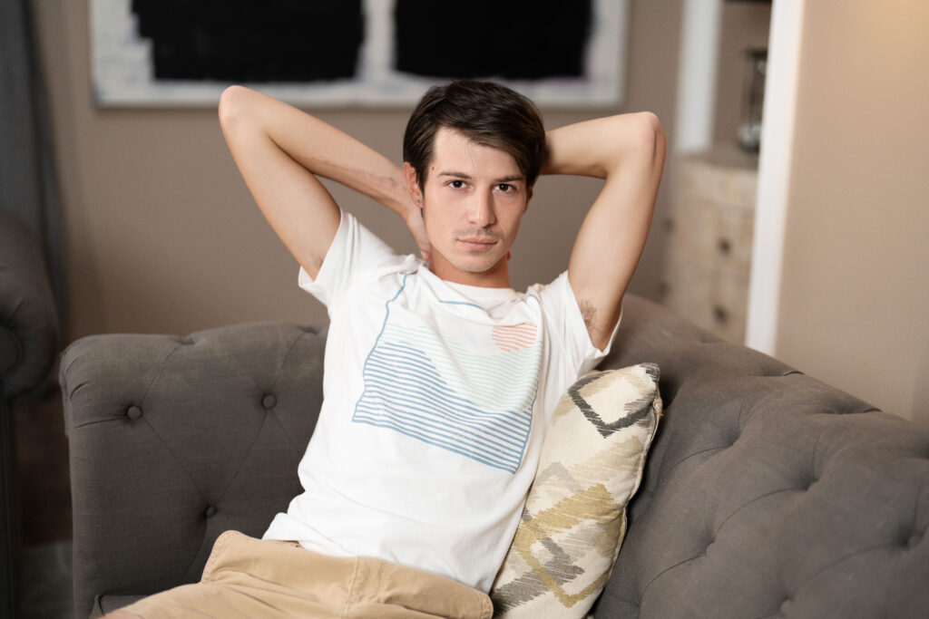 “Fuck buddies Luke Connors and Angel Elias skip the talking and go right to kissing on the couch. The guys know what they want, and they suck each other and swordfight before Angel gets on all fours to take Luke’s cock. Luke fucks the bottom on his back, then Angel rides him before the top drills him in piledriver position. Luke cums on that hole, then Angel sits back to jack himself off.”