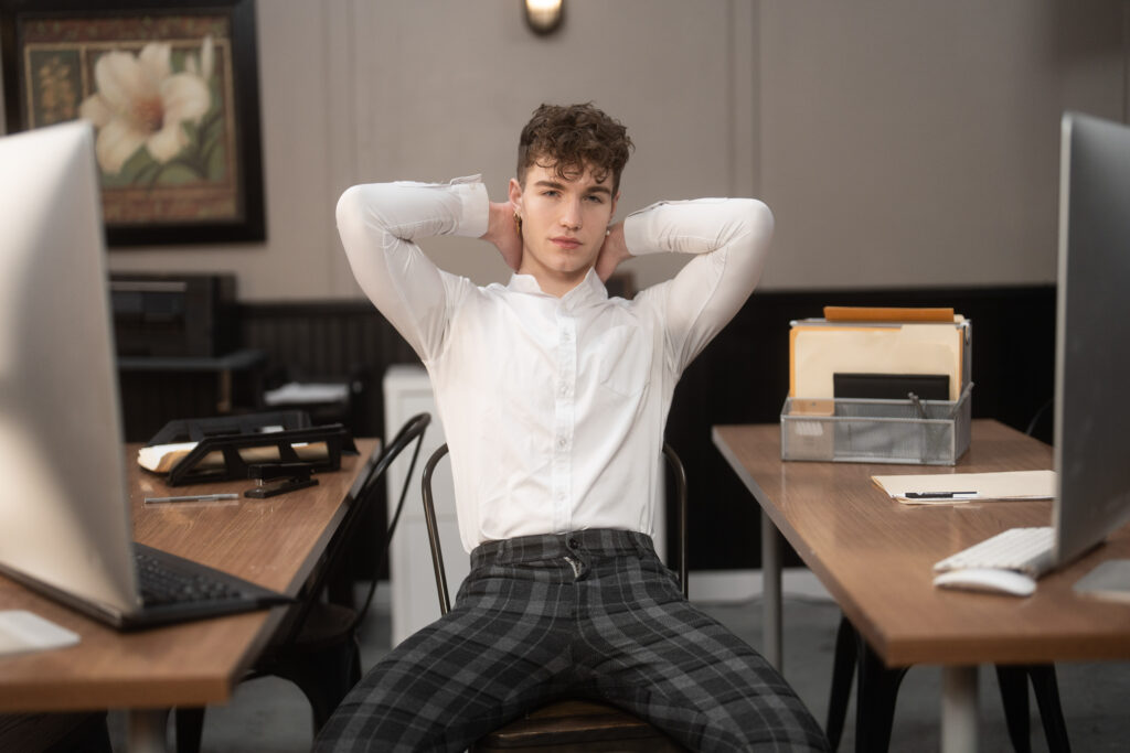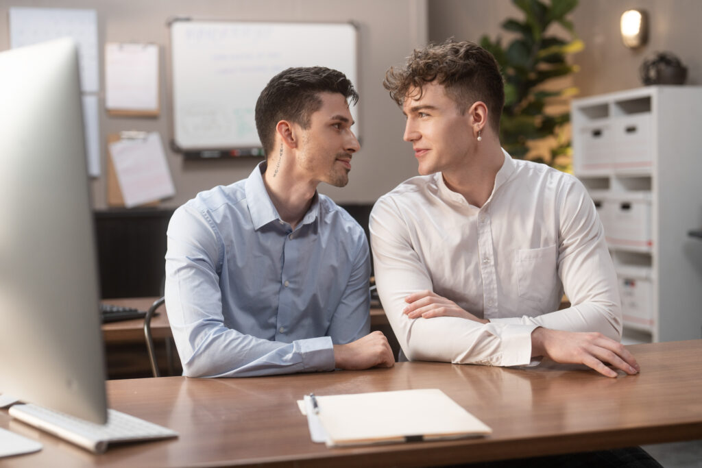 “When Hazel Hoffman asks his coworker how much longer it is till lunch, he doesn’t know why Kane Fox tells him it’s exactly 11:11. Kane explains that he can make a wish, and the skeptical Hazel gives it a try and is shocked when he gets exactly what he wanted. Hazel tries bigger and better wishes, then asks for Kane’s clothes to disappear! Kane is surprised but pleased that the cute twink wanted to see him naked, and he makes Hazel’s wish cum true as they suck each other, then Kane fucks the bottom on his desk. Hazel sits on Kane’s cock, then gets fucked in on his back and against the wall in doggystyle till the guys cum. He’ll be wishing for this every day!”