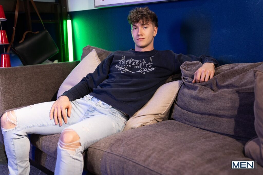 “The freshmen are going wild at the big dorm party, under the watchful eye of RA Johnny Donovan. Finn August and Jake Preston dance with their buddy Joey Mills, who tells the pair they should make out because they totally like each other! Joey’s right, and the guys kiss on the couch, then Finn sucks Jake. Johnny catches them and tries to find a rule they’re breaking, but Joey tells him he should strip and join them! The hot older guy gets into it, especially when Jake and Finn spit-roast him. Then it’s Finn’s turn to get his holes filled, while Joey directs the action. Johnny rides Jake, then Finn rides the RA till he cums all over Johnny’s abs, and Jake covers the RA’s face with his load. Johnny pounds the bottom against the bunk till he creampies him.”