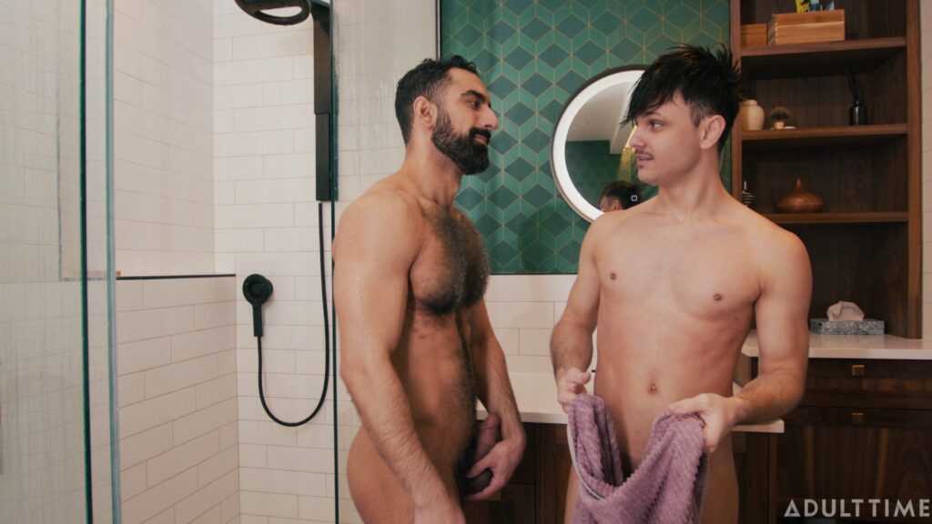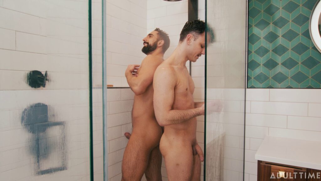 However, as they’re showering, Ali ends up getting a boner because he’s just so used to jerking off every time he takes a shower. Ali and Enzo come up with various flimsy excuses to jerk off in the shower together, and eventually come up with excuses to go even further!