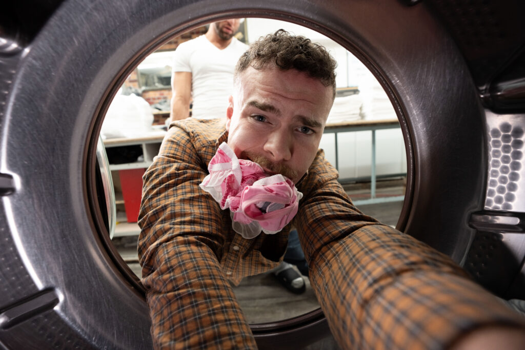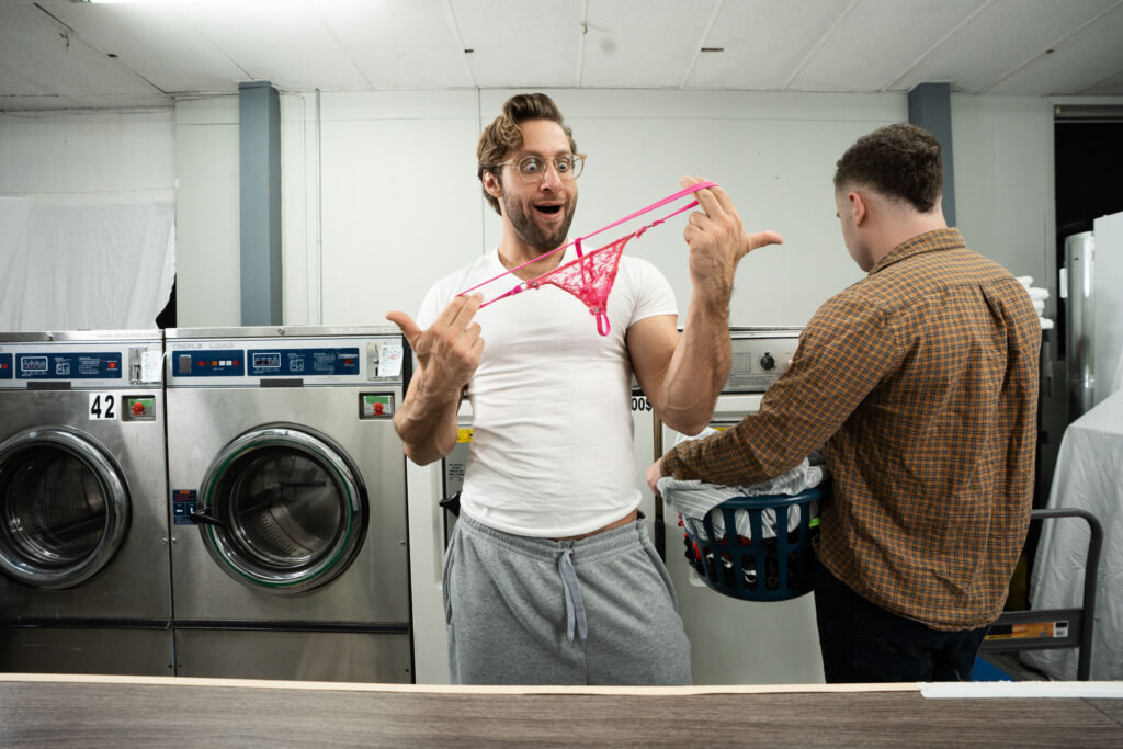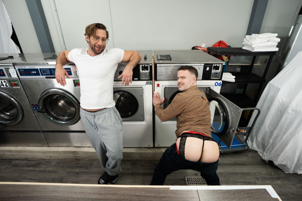 “Dom King notices a lacy thong fall out of Marcus McNeil’s basket at the laundromat, and he just has to dig through Marcus’s load and give his panties a sniff. When Marcus bends over to load the machine, Dom sees he’s wearing the sexiest pair of all! He tugs Marcus’s lacy thong to the side and slides his cock into the bottom’s hairy hole. Marcus sucks the top and gets drilled against the washer door, then rides the top on the folding table. After Dom drills the bottom on his back, it’s time for two more loads.”
